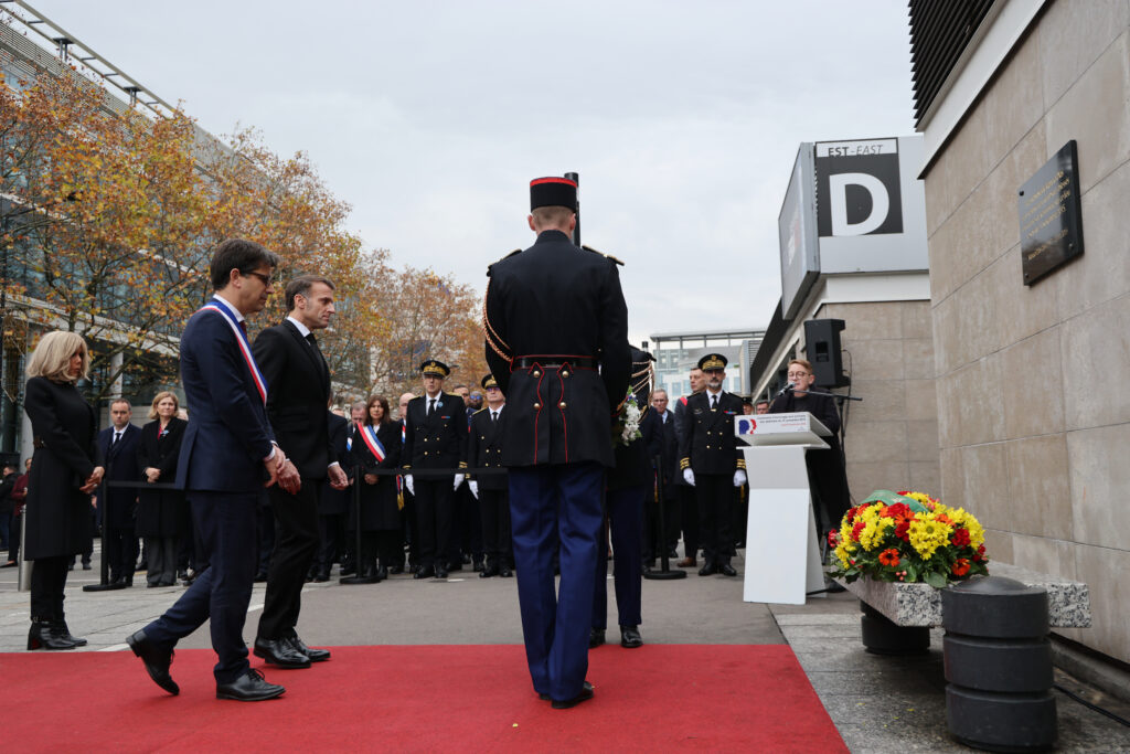 Des commémorations sobres et silencieuses devant le Bataclan et les terrasses parisiennes endeuillées, après une cérémonie devant le stade de France: politiques, victimes et proches des disparus se sont recueillis jeudi devant les lieux des attentats du 13-Novembre, dix ans après une nuit d’horreur.Les noms des 92 victimes du Bataclan – dont deux se sont suicidées depuis le massacre – ont résonné boulevard Voltaire, où une foule d’officiels, de familles et de rescapés s’est rassemblée sur le lieu le plus meurtri des attaques jihadistes.Des membres de la BRI, le visage masqué, sont présents en nombre, dix ans après avoir donné l’assaut contre les terroristes retranchés dans la salle de concert. A eux comme aux autres primo-intervenants, le chef de l’Etat adresse la “reconnaissance” de la Nation. “Vous pouvez être fiers”. Devant les portes du Bataclan, une multitude de bouquets de fleurs ont été déposés au pied d’une plaque où sont gravés les noms des victimes. Chacun attend son tour pour s’en approcher: certains se croisent, se reconnaissent, s’embrassent, se prennent longuement dans les bras ou échangent un petit mot de réconfort, avant de déposer à leur tour une fleur, une bougie, un signe de mémoire.- “La vie continue” -“Aujourd’hui, je peux me souvenir, je peux pleurer, je peux me laisser aller, et puis demain, la vie continue”, confie Sophie Bouchard-Stech à l’AFP, juste avant le début de la cérémonie. L’Allemande fait le voyage chaque année pour rendre hommage à son mari, tombé sous les balles des jihadistes au Bataclan. Devant chacun des lieux frappés par les commandos téléguidés par le groupe Etat islamique (EI) cette funeste soirée du 13 novembre 2015, Arthur Dénouveaux et Philippe Duperron, présidents d’associations de victimes, ont déposé des gerbes de fleurs, avant qu’Emmanuel Macron et Anne Hidalgo ne fassent de même, avant d’observer à chaque fois une minute de silence.”10 ans. La douleur demeure. En fraternité, pour les vies fauchées, les blessés, les familles et les proches, la France se souvient”, a posté sur X le président de la République. Près des terrasses parisiennes, dans les Xe et XIe arrondissements, où 39 vies ont été fauchées au total, dont 21 devant la seule Belle Equipe, le silence règne, les yeux des personnes présentes sont embués de larmes. Aux alentours, les panneaux publicitaires affichent tous la devise en latin de Paris, “Fluctuat Nec Mergitur” (Il est battu par les flots, mais ne sombre pas). – “Absence immense” -Les commémorations ont débuté le matin par une cérémonie au stade de France, avec la famille de Manuel Dias, première victime du 13-Novembre, tuée quand trois kamikazes se sont fait exploser devant les portes du stade où se jouait un match amical France-Allemagne. “Nous n’oublierons jamais; on nous dit de tourner la page dix ans après, mais l’absence est immense”, a dit dans un discours poignant sa fille, Sophie Dias, très émue. Le vendredi 13 novembre 2015, la France a été frappée par les attaques jihadistes les plus meurtrières de son histoire et qui ont profondément marqué le pays. L’hommage national aux 132 morts et à leurs familles, aux blessés et rescapés, aux forces de secours, doit se conclure par l’inauguration à 18H00 d’un jardin mémoriel au coeur de la capitale. Ce jardin est fait de grandes stèles et de blocs de granit, évoquant la géographie des différents lieux visés. Des autocars doivent y emmener les familles et les victimes.La cérémonie orchestrée par Thierry Reboul, déjà à la manœuvre pour l’ouverture des JO-2024, sera retransmise en direct à la télévision et projetée sur grand écran, place de la République à Paris, où un mémorial s’était improvisé il y a dix ans, des Parisiens traumatisés venant y déposer fleurs, bougies et mots. – “Tous ensemble” -“L’objectif cette année, c’est de se dire +soyons tous ensemble+ (…), célébrons évidemment nos morts mais aussi la force de notre République et de notre culture: les terroristes n’ont pas gagné ce soir-là”, a insisté sur RMC Arthur Dénouveaux.”Nous avons été debout pendant 10 ans, nous serons debout (jeudi). Cette cérémonie sera aussi un acte de résistance”, a salué Philippe Duperron, président de l’association “13onze15”. Les commémorations officielles se tiennent sous vigilance renforcée, dans un contexte de menace terroriste “toujours élevée”, selon le ministre de l’Intérieur Laurent Nuñez, qui a rappelé sur BFMTV/RMC que “six attentats” avaient été déjoués depuis le début de l’année. Jeudi soir, Notre-Dame de Paris et les églises parisiennes feront sonner leurs cloches “entre 17H57 et 18H02”, a annoncé le diocèse. Des “messes, des veillées, ont lieu dans plusieurs paroisses”, a précisé l’archevêque de Paris Laurent Ulrich.abo-juc-mby-pab-etr-fff-ch/asl/SWI