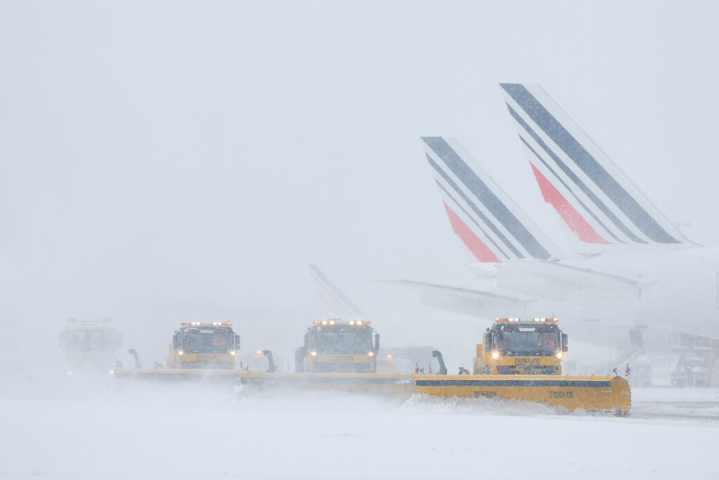 Dans le brouillard et sous les flocons, un convoi de véhicules jaunes avance lentement pour dégager les pistes. À l’aéroport Paris-Orly, les volontaires de l’équipe d’hiver défient mercredi une neige “exceptionnelle”.”On avait une prévision de 3 à 6 centimètres de neige sur huit heures, mais six centimètres sont tombés en une heure et demie”, raconte à l’AFP Jérôme Lauferon, directeur des aires aéronautiques à Orly.Des précipitations brutales et inhabituelles depuis plusieurs années, souligne le responsable. Ce qui relèverait de la routine au Canada ou en Russie déclenche une alerte maximale à Paris où les chutes de neige se font de plus en plus rares et dont les aéroports ne sont pas conçus pour une logistique hivernale lourde.Avant les premiers flocons lundi, la cellule d’anticipation a été mise en place dimanche et fonctionne 24 heures sur 24 tout comme le “poste de commandement neige”. C’est alors que commence l’aventure humaine: la gestion de la neige à Orly repose sur cinq responsables qui s’appuient sur quelque 300 volontaires qui quittent leurs bureaux chez le groupe ADP (Aéroports de Paris) pour affronter les éléments. – “Commando d’hiver” -“Cela fait plaisir de pousser les flocons”, s’enthousiasme Stephen Chasseriaud, 58 ans, chauffeur de déneigeuse. Ancien pilote, actuellement responsable interface-travaux voierie, il a passé son permis poids lourds pour rejoindre il y a 12 ans les rangs des volontaires du “service hivernal”. “On est en mode commando”, sourit-il, un souvenir de son service militaire et du stage commando grand froid. “Cela permet de voir une autre facette de l’aéronautique. C’est une expérience humaine riche, on se sent utile”. Même ressenti pour Benjamin Sinegre, responsable de stratégie environnementale à Paris-Orly et lui aussi volontaire, content de quitter son bureau pour s’installer au commandement neige. “C’est enivrant de vivre l’instant présent et d’aider l’aéroport à tourner”, confie-t-il.Sa mission: dispatcher les cinq “trains neige”, chacun composé de plusieurs véhicules, entre les pistes et les voies de circulation des avions. – 200 km/h au décollage -Robin Durand, responsable de la cellule de l’anticipation, embarque une équipe de AFP à bord d’une voiture jaune qui circule sur les pistes et supervise le déneigement. A la tête de chaque “train neige” un véhicule convoyeur ouvre la voie, guidant cinq déneigeuses équipées de larges lames pour pousser la neige. Derrières elles, un véhicule qui récupère la neige et l’éjecte hors des pistes et finalement un épandeur qui répand du formiate de potassium, équivalent du sel routier, mais moins corrosif pour les avions et plus efficace contre la glace. “Ce produit sert à abaisser le point de congélation: là où l’eau gèle normalement à 0°C, le sel jusqu’à -5°C et le formiate protège jusqu’à -15 ou -20”, explique-t-il. Dans les aéroports l’enjeu est crucial en cas de chute de neige et de verglas: si sur une route, les voitures peuvent adapter leur vitesse en fonction des conditions climatiques, un avion en phase de décollage ou d’atterrissage doit atteindre la vitesse de 200 km/h en toute circonstance. Les pistes longues sont déneigées en 35 à 45 minutes en moyenne et pendant la durée du déneigement, le trafic sur la piste est interrompu. Ce qui réduit les capacités de l’aéroport et peut causer la réduction du nombre de vols des compagnies. Une centaine de vols ont ainsi été annulés mercredi matin dans les aéroports parisiens, dont une cinquantaine à Paris-Orly sur 517 sur une journée. “On n’est pas surpris par la neige”, assure Coralie Chabot, responsable du centre opérationnel en ajoutant que les entraînements ont été menés “toutes les semaines” depuis septembre.”La neige comme aujourd’hui est assez exceptionnelle et nous se sommes pas dimensionnées en termes d’équipes”, ni en termes de postes de stationnement pour les avions, conclut-elle.