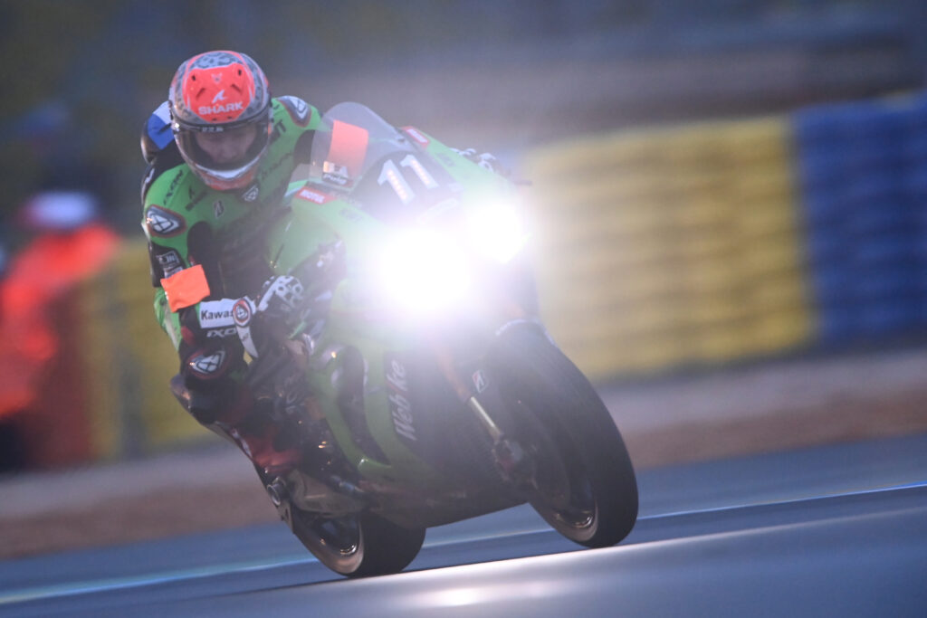 Dans une course plus indécise que jamais, Kawasaki cavalait en tête de la 48e édition des 24 Heures du Mans Motos samedi soir après huit heures d’une épreuve rendue délicate par les conditions de piste, à l’origine de nombreuses chutes.Au pointage de 23h00 (21h00 GMT) la Kawasaki N.11 de l’équipe Webike Trickstar était en tête devant la Yamaha N.7 du YART, reléguée à un tour après que son pilote allemand Marvin Fritz, alors à la lutte pour la tête de la course, est tombé.Derrière, la BMW N.37 du Motorrad World Endurance Team était troisième, talonnée par l’ERC Endurance N.6, quatrième, sur une piste dégradée par la pluie tombée jusqu’en début de soirée.Dans la roues des deux BMW, la Honda N.5 du F.C.C TSR Honda France, victorieuse de l’épreuve en 2023, pointait à la cinquième place provisoire après avoir chuté dans la nuit mancelle – comme la N.37. – Les déboires du SERT -La pluie a rapidement fait des dégâts parmi les favoris: si la Yamaha N.7, partie en pole position, a pu refaire son retard après une chute dans le premier tour de course, la Suzuki N.1 du Yoshimura SERT est, elle, allée de déconvenues en déconvenues.   L’équipe franco-japonaise, victorieuse l’an dernier au Mans, occupait la tête de la course jusqu’à la chute du Français Gregg Black, une dizaine de minutes seulement après le départ donné à 15h00.Relégué dans les tréfonds du classement, le SERT était remonté à la quatrième place quand son deuxième pilote, Etienne Masson, est tombé, la faute à la pluie revenue jouer les trouble-fête après une accalmie.Peu avant 20h00, ce fut au tour de son dernier titulaire, le Japonais Cocoro Atsumi, de finir au tapis. Si l’équipe a pu repartir, elle a tout de même perdu une dizaine de minutes, le temps de réparer la moto. Elle pointait au delà de la 25e place en fin de soirée, après trois nouvelles chutes de Gregg Black.Parmi les équipes de têtes, seule la Kawasaki N.11 n’est pas tombée pour l’heure. Au total, 53 équipages – dont 18 dans la catégorie reine EWC et 31 en Superstock, où s’alignent des engins plus proches de la série – se sont élancés sur le circuit Bugatti.- Nuit sèche attendue -Troisième des “24 Heures” l’an dernier, le YART a affiché un rythme d’enfer lors des essais qualificatifs jeudi et vendredi, Marvin Fritz s’offrant même le record du tracé Bugatti long de 4,185 km.La disette n’a que trop duré pour le YART. L’équipe autrichienne ne s’est plus imposée au Mans depuis 2009, en dépit de quatre pole positions entre 2020 et 2024.Honda et Kawasaki tenteront, elles, de décrocher une 15e victoire dimanche pour rejoindre Suzuki au palmarès de l’épreuve sarthoise.Si la Kawasaki N.11 remportait cette 48e édition, le Français Grégory Leblanc deviendrait le premier pilote à signer six succès sur l’épreuve (après 2010, 2011, 2012, 2013 et 2016).Face à la meute habituelle des constructeurs nippons, BMW – seul représentant non japonais parmi les constructeurs engagés dans l’élite – veut être la première marque européenne à remporter les 24 Heures motos. Depuis la première édition en 1978, le palmarès est un monopole japonais sur le tracé manceau.Les trois pilotes par moto en catégorie EWC (et quatre pour ceux qui le souhaitent en Superstock) vont tourner jusqu’à dimanche 15h00 (13h00 GMT). D’ici là, si les prévisions météo annoncent une nuit sèche, les pilotes risquent de devoir encore composer avec la pluie dimanche. De quoi pimenter la ronde de 24 heures… et peut-être couronner un outsider.
