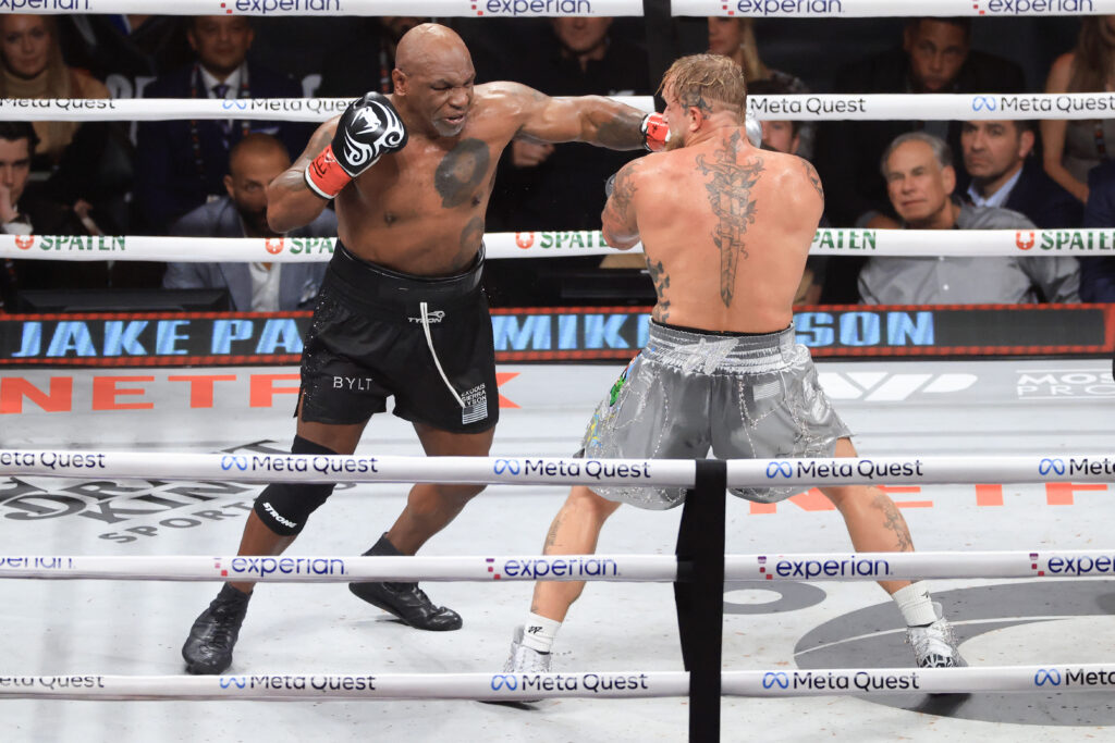 A 58 ans, la légende des poids lourds Mike Tyson n’a pas tenu la distance face au YouTuber devenu boxeur Jake Paul dans un combat professionnel aux allures d’exhibition vendredi à Arlington (Texas, Etats-Unis).Jake Paul a été déclaré vainqueur à l’unanimité des juges d’un combat baroque qu’il a organisé avec sa société de promotion, et qui aura offert à ce spécialiste du show une publicité à hauteur de la légende l'”Iron Mike” Tyson en direct sur la plateforme de streaming Netflix.”C’est un tel honneur, Mike Tyson est une légende, le plus grand de l’histoire, il m’a inspiré. C’était très dur comme attendu”, a salué Jake Paul.”Je suis heureux, je n’ai rien à prouver à personne d’autre qu’à moi-même, j’ai été heureux de ce que j’ai pu faire”, a commenté Tyson pour sa part, qui a donné le change et dominé les deux premiers rounds avant de largement décliner physiquement à partir de la troisième reprise, où il a subi un bel enchaînement de son adversaire.Tyson n’a pas précisé si ce combat, son premier chez les professionnels depuis 2005, était bien le dernier d’une très longue carrière: “Je ne sais pas, ça dépend.”- Tyson ralenti -Jake Paul, “sale gosse” américain qui a fait fortune grâce à ses vidéos sur les réseaux sociaux, âgé de 27 ans, n’était pas né du temps de la splendeur “d’Iron Mike”, champion du monde des lourds dès 1986 alors qu’internet n’existait pas.Au cours de sa carrière tumultueuse débutée en 1985, Tyson avait remporté 50 victoires dont 44 par K.-O., mais a désormais subi sept défaites, dont deux restées célèbres contre Evander Holyfield en 1996 et 1997.De nombreux observateurs, notamment l’ancien champion du monde américain de boxe Deontay Wilder, ont fait part de leur préoccupation de voir un quasi-sexagénaire aligné dans un combat professionnel, disant redouter une blessure grave. Le combat a été légèrement adapté à cet effet, avec huit reprises de deux minutes (au lieu des 12 rounds de 3 minutes) et des gants légèrement plus épais.Tyson avait dû repousser le combat, initialement prévu le 20 juillet, après avoir reçu un traitement médical le 26 mai à bord d’un avion en raison d’un ulcère.Vendredi à Arlington, plus de 72.000 spectateurs ont été chauffés à blanc par un combat d’ouverture furieux qui a vu l’Irlandaise Katie Taylor conserver son titre unifié des super-légères face à la Portoricaine Amanda Serrano, sur décision unanime des juges.Jake Paul a ensuite fait une entrée fracassante sous les sifflets du public assis dans une voiture verte customisée avec son frère Logan, son partenaire de frasques, qui avait été battu par une autre légende de la boxe, Floyd Mayweather Jr., lors d’une piètre exhibition en 2021.Tyson a lui fait une entrée sobre, habillé de noir, la barbichette blanchie par les années, sous les hourras du public, déçu au final de voir son héros à la démarche ralentie battu par un néo-boxeur.Jake Paul, influenceur controversé aux 20,8 millions d’abonnés sur YouTube, a su se muer en boxeur mais surtout en homme d’affaires, à la tête d’une société de promotion, d’un fond de capital risque, d’un site de paris sportifs ou encore d’une marque de produits de soin du corps.Avec désormais 11 succès et une défaite chez les pro, sa bonne tenue vendredi pourrait lui donner envie de défier des boxeurs plus jeunes.