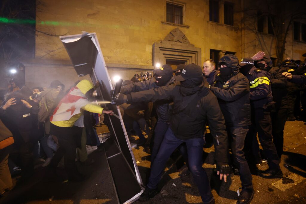 Georgian police on Friday fired water cannon and tear gas on demonstrators, as thousands took to the streets for a second day to protest the government putting off EU membership talks.The Black Sea nation has been rocked by turmoil since the ruling Georgian Dream party declared victory in October parliamentary elections that the pro-EU opposition decried as falsified.In a televised address to the nation, pro-Western President Salome Zurabishvili — at loggerheads with the ruling party — said: “The resistance movement has begun… I stand in solidarity with it.”We will remain united until Georgia achieves its goals: to return to its European path, secure new elections.”Prime Minister Irakli Kobakhidze’s statement Thursday that Georgia will not seek to open accession talks with the European Union until 2028 ignited a furious reaction from the opposition and two days of protests.On Friday, AFP reporters saw riot police fire water cannon and tear gas at pro-EU protesters gathered outside the parliament in Tbilisi who tossed eggs and fireworks.Clashes broke out later between protesters and police, who moved in to clear the area outside parliament, beating demonstrators, some of whom threw objects.Independent TV station Pirveli said one of its journalists covering the protest was hospitalised with serious injuries after police beat her and a cameraman.The interior ministry said two of its employees had been injured as “protestors verbally and physically assaulted police officers, throwing various objects and pyrotechnics in their direction”.”To de-escalate the situation, law enforcement officers have used special measures prescribed by law,” it said.AFP reporters saw a small fire on the street at the scene of the protest and two Molotov cocktails being thrown.- ‘Authoritarian’ -In power for more than a decade, critics accuse Georgian Dream in recent years of having moved the country away from Europe and closer to Russia.Ahead of October’s elections, it pushed through legislation targeting independent civil society and curbing LGBTQ rights, drawing warnings from Brussels.”Georgian Dream’s self-proclaimed government is doing everything it can to destroy Georgia’s chances of joining the EU,” said one demonstrator, 39-year-old schoolteacher Laura Kekelidze.”They know their authoritarian rule is incompatible with EU membership,” she told AFP. “But Georgians belong in Europe, and that’s why we are out here in the streets today.”The former Soviet republic officially gained EU candidate status in December 2023. Polls say 80 percent of the population backs joining the bloc.But earlier this year, Brussels froze Georgia’s accession process, citing democratic backsliding.Opposition lawmakers have questioned the results of last month’s parliamentary elections, which gave Georgian Dream a majority.They are boycotting the new parliament, while President Zurabishvili has sought to annul the election results through the country’s constitutional court.- ‘Punitive attack’ -Protests were also held in other cities across Georgia on Friday, independent TV station Mtavari reported.At least four demonstrators were arrested in Georgia’s second-largest city, Batumi, local media reported.On Thursday, an AFP reporter saw riot police beating peaceful protesters and journalists at the demonstration.Police said 32 officers had been wounded then and 43 protestors detained “for disobeying lawful police orders and for petty hooliganism”.European nations and rights groups on Friday expressed concern over the situation.”Police actions in Tbilisi mark another punitive attack on the right to peaceful assembly,” Amnesty International said.France, Britain, Ukraine, Poland, Sweden and Lithuania were among the countries to voice concern.The Council of Europe condemned what it called the “brutal repression”, urging Georgia to remain “faithful to European values”.Prime Minister Kobakhidze accused the opposition and the EU ambassador to Georgia of distorting his words, and insisted membership in the bloc “by 2030” remains his “top priority.”Georgian Dream MPs voted unanimously Thursday for Kobakhidze to continue as prime minister, even as the opposition boycotts parliament, which faces a serious legitimacy crisis.One author of Georgia’s constitution, Vakhtang Khmaladze, told AFP that any decisions made by the new parliament — including Kobakhidze’s nomination — are invalid, because it approved its own credentials in violation of a legal requirement to await a court ruling on Zurabishvili’s bid to annul the election results.