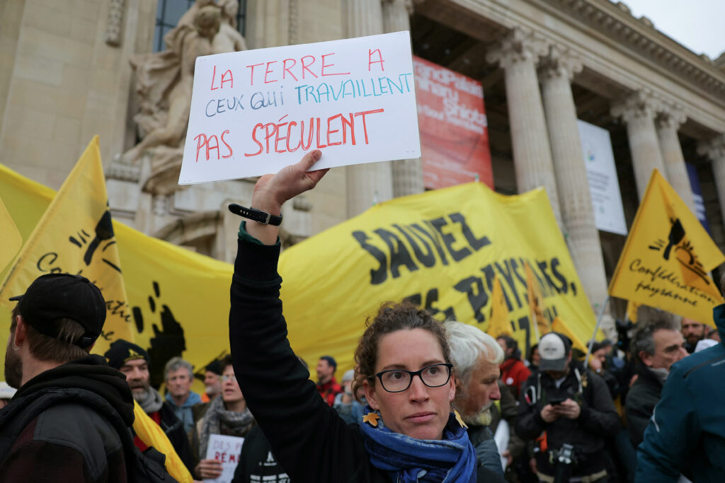 “Traders tremblez, les paysans reprennent leur blé”: des agriculteurs de la Confédération paysanne sont venus jeudi manifester devant le Grand Palais à Paris où se tenait une réunion européenne de grands acteurs du commerce des céréales, a constaté une journaliste de l’AFP.”Sauvez les paysan.n.es, mangez un trader”, proclamait une grande banderole jaune aux couleurs du syndicat, déployée sur le parvis du monument par les manifestants venus dénoncer la dérégulation des marchés.Cette manifestation a eu lieu alors que s’ouvre en Uruguay le sommet du Mercosur, qui pourrait à cette occasion signer avec l’UE un accord de libre-échange dénoncé par toutes les organisations agricoles en France et dans de nombreux pays européens.Les manifestants – une centaine – ont déposé des bottes de paille devant l’entrée, certains sortant du bâtiment après y avoir ravi des pancartes “Syngenta” (fabricant sino-suisse de pesticides et de semences) et “InVivo” (géant français du négoce de grains).”Traders tremblez, les paysans reprennent leur blé”, “des prix rémunérateurs plutôt que des traders”, chantaient-ils, photographiés par des participants à la réunion en costume attendant de pouvoir rentrer dans le Palais, aux issues temporairement bloquées par la sécurité. “La bouffe à pas cher, c’est la paysanne qu’on enterre”, brandissait sur une pancarte un agriculteur à béret.Le monument accueille à partir de jeudi après-midi la 64e Bourse de commerce européenne des grains, qui rassemble depuis les années 1960 les opérateurs de marchés agro-alimentaires.Laurence Marandola, porte-parole de la Confédération paysanne, a dénoncé “la spéculation sur les produits agricoles”. “A l’intérieur, il y a des gars en costard-cravate qui se gavent sur le dos des paysans”, a-t-elle dit à la presse.Des forces de l’ordre casquées, arrivées au bout d’une vingtaine de minutes, se sont déployées des deux côtés du parvis. “Laissez tomber, vous n’avez plus de ministre !” les ont interpellé des manifestants.La police a ensuite bloqué les manifestants pendant plus d’une heure, donnant lieu à des bousculades, selon une journaliste de l’AFP.In fine, les forces de l’ordre, soutenues par la brigade de répression de l’action violente motorisée (Brav-M), ont procédé à cinq interpellations, selon la Confédération paysanne. Ces cinq personnes ont été interpellées pour “violence” et “tentative d’intrusion”, selon la police.Devant le Grand Palais, la Confédération paysanne a fait intervenir le député écologiste Nicolas Bonnet, afin de les aider à résoudre le blocage. Peu après 15h, le groupe de manifestants a pu regagner le métro, escorté par les forces de l’ordre.Au diapason des autres manifestants présents, Marie Ortegat, maraîchère dans l’Oise, a dénoncé un “deux poids deux mesures” de la part des autorités.Jusqu’à jeudi, la police n’avait procédé à aucune interpellation dans le cadre du mouvement de colère agricole, ranimé depuis mi-novembre.Ces dernières semaines ont vu notamment des manifestants de la Coordination rurale mener des intrusions dans les locaux de l’Office français de la biodiversité (OFB) à Guéret. Ils ont répandu des déchets à l’intérieur et saccagé des piles de dossiers, déposé du lisier devant la mairie de Pessac et bloqué le port de commerce de Bordeaux. Le 28 novembre, des militants du syndicat majoritaire FNSEA ont pour leur part élevé un mur de parpaings devant le siège de l’institut de recherche Inrae, sous le regard des policiers.