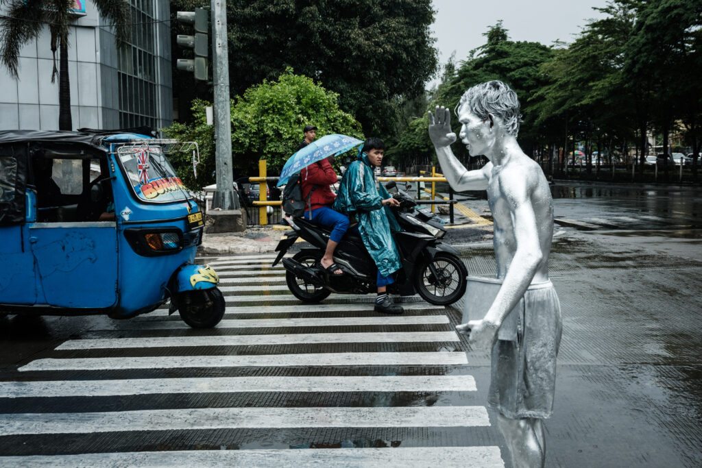 Par un après-midi pluvieux à Jakarta, trois hommes le corps recouvert de peinture argentée font la manche auprès des automobilistes: partout sur l’île de Java, les “manusia silver” n’ont souvent pas d’autre choix que de mendier pour gagner à peine de quoi survivre.”Je veux trouver un vrai travail, plus digne, j’ai honte de gagner de l’argent comme ça”, témoigne Ari Munandar, 25 ans.”Mais la gêne disparaît quand vous vous souvenez que votre fille et votre femme sont à la maison”, ajoute l’homme.Pieds nus, vêtus seulement d’un short et enduits d’une peinture irritante, Ari, son frère Keris et leur ami Riyan Ahmad Fazriyansah, vont passer cinq heures à une intersection du nord de la gigantesque capitale.Chaque fois que la file de voitures s’arrête, ils se figent et se déplacent en gestes saccadés, tels des robots.”Je fais ça parce qu’un jour, j’ai vu un ami gagner plus d’argent en imitant un robot”, explique Ari, qui tend sa sébile aux automobilistes.Rien d’anormal à Jakarta, où de nombreux hommes sans emploi s’improvisent agents de circulation ou gardiens de parking, contre un petit billet de 2000 ou 5000 roupies (0,10 à 0,20 euro).Les meilleurs jours, Ari peut gagner jusqu’à 200.000 roupies (10 euros), mais sa recette quotidienne dépasse rarement 120.000 roupies (6,4 euros), juste de quoi nourrir sa famille.Un maigre revenu loin du salaire minimum mensuel de Jakarta, qui s’élève à cinq millions de roupies (260 euros) selon l’Agence indonésienne des statistiques.”Je ne vais pas déjeuner, mais juste me désaltérer et fumer une cigarette”, dit Ari, dans un pays où la population se plaint du coût de la vie.Le prix du kilo de riz, aliment de base dans l’archipel, a bondi de 27% entre 2015 et 2025, selon l’agence des statistiques.- Au chômage depuis 2019 -Le peu d’offres d’emploi est la principale raison pour laquelle des jeunes, hommes ou femmes, doivent se résoudre à faire la manche.”Depuis que j’ai été licencié en 2019, je mendie”, raconte Ari. “Avant cela, je nettoyais des toilettes”.Selon les données officielles, le nombre de personnes vivant en dessous du seuil de pauvreté (fixé à 595.000 roupies par mois, soit 31 euros) dans la métropole de 11 millions d’habitants est passé de 362.000 en 2019 à 449.000 en septembre 2024.”A Jakarta (…) de nombreux jeunes de 20 à 40 ans avec peu de qualifications se sont retrouvés au chômage”, relève Bhima Yudistira, directeur du Centre d’études économiques et juridiques de Jakarta.”Même s’il n’existe pas de décompte national, il y a eu une énorme augmentation de la mendicité à Jakarta après la pandémie (de Covid) de 2021″, ajoute-t-il.Après cinq heures à tourner sur le même carrefour, les trois compagnons d’infortune rentrent chez eux. Entassés à l’arrière d’un tuk-tuk, ils comptent leurs maigres gains et allument une cigarette qu’ils se partagent.Bien loin des rutilants gratte-ciel du centre-ville, ils regagnent leur bidonville coincé entre une voie de chemin de fer et une rivière à l’eau crasseuse et nauséabonde.Des enfants jouent sur les rails au rythme des trains qui sifflent.Leurs modestes habitations, qui ne font pas plus 15 m2, sont faites de toile et de bois abîmés par le temps. A la nuit tombée, Ari, accroupi, s’asperge le corps d’eau, éclairé par une lampe torche que tient son épouse, Wahyu Ningsih.Sous le regard de leur fille d’un an, il se frotte énergiquement la peau pour effacer les dernières traces de la peinture huileuse et collante.”Au début, la peinture me brûlait, j’ai gardé une cloque dans le cou. Aujourd’hui, ça ne me pique plus que les yeux”, confie Ari. Une fois séché, il file chez lui et joue avec sa fille. “Dès que je suis ici, j’oublie toute la fatigue”, sourit-il, avant de confier un dernier voeu, le regard plein d’amour pour son enfant: “J’espère qu’elle ne fera jamais ce que je fais”.
