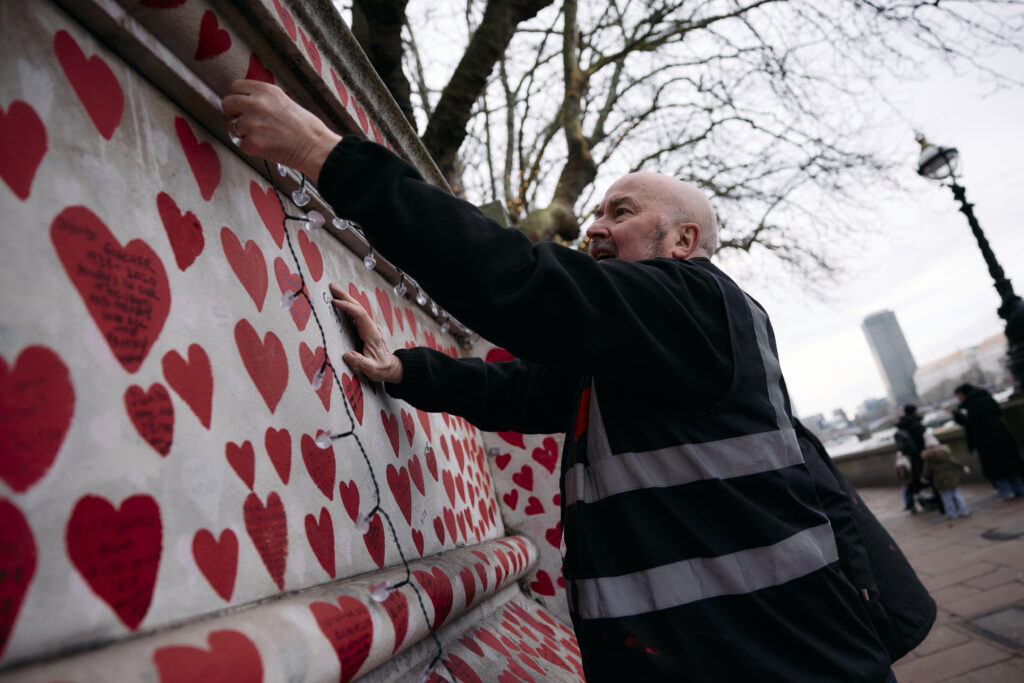 A l’occasion de Noël, des proches de victimes du Covid ont accroché des guirlandes lumineuses sur un mur recouvert de coeurs rouges dans le centre de Londres, un mémorial improvisé, symbole d'”amour” et de “colère”.A l’approche du cinquième anniversaire de la pandémie, l’émotion reste vive.Plus de 240.000 coeurs ont été peints à la main sur le mur long de 500 mètres qui se trouve au bord de la Tamise, avec une vue imprenable sur le Parlement de Westminster. Chacun représente une personne morte du Covid au Royaume-Uni. Des milliers de messages sont écrits: “Mamy, je t’aimerai toujours”, “Phil, toujours dans mon coeur”, “Tu nous manques chaque jour”. A l’origine, ce mur du souvenir, qui s’étend sur 500 mètres, devait être temporaire. Il a été réalisé sans autorisation en mars 2021, afin de demander des comptes au gouvernement de Boris Johnson, alors Premier ministre, pour sa gestion chaotique de la pandémie. Il est accusé notamment d’avoir tardé à réaliser la gravité de la pandémie, en confinant trop tard puis en levant le confinement trop rapidement.Ce mur est “une effusion d’amour, de colère, de rage”, résume Lorelei King, dont le mari est mort du Covid fin mars 2020. Cette femme de 71 ans fait partie du groupe “Les amis du mur”, une dizaine de bénévoles qui chaque vendredi viennent nettoyer le monument, repeindre les coeurs qui s’effacent avec la pluie, réécrire les messages. “C’est assez méditatif”, dit-elle en repeignant délicatement un coeur qui disparaissait.Le groupe continue de dessiner de nouveaux coeurs, quand le Covid emporte de nouvelles personnes. Quelques jours avant Noël, les bénévoles se sont retrouvés pour une autre mission, plus joyeuse: installer des guirlandes le long du mur. Ils les ont allumées lundi après-midi et elles vont rester en place jusqu’à début janvier. – “Réconfort” -“Nous installons des guirlandes chaque Noël pour nous recueillir et nous souvenir des personnes qui ne sont pas avec nous pendant la période de Noël”, explique Kirsten Hackman, 58 ans. Sa mère est morte en mai 2020 du Covid.”Pour beaucoup d’entre nous, il y a une place vide autour de la table à Noël. (…) C’est un moment très difficile”, ajoute-t-elle.Les passants s’arrêtent, intrigués, pour regarder ce mur atypique, questionnent le groupe qui s’active en riant. Ce mur est une “séance de thérapie” collective, racontent des bénévoles. Mais près de cinq ans après le début de la pandémie, la douleur reste la même, dit Lorelei King. Comme d’autres, elle explique ne pas avoir réussi à faire son deuil. “Nous n’avons pas pu avoir de vraies funérailles”, souligne-t-elle, en raison des règles du confinement en vigueur quand son mari est mort. Alors elle met son énergie dans ce mur. “Cela me réconforte. (…) Et je ne veux pas que les personnes qui nous sont chères soient oubliées.” “On se comprend. On est dans le même bateau”, dit Michelle Rumball, 53 ans, dont la mère est morte du Covid en avril 2020.Elle était présente dès le premier jour, quand les premiers coeurs ont été peints, après un appel sur les réseaux sociaux du groupe de militants politiques Led By Donkeys. Pendant dix jours, des centaines de personnes ayant perdu des proches se sont présentées au mur, même si elles risquaient d’être arrêtées pour dégradation d’un mur classé. “J’étais très en colère. C’était une manière de manifester”, se souvient Michelle Rumball. Le mur dépend de donations. Le groupe veut le rendre “permanent” et reconnu officiellement. Il serait ainsi mieux protégé. Les amis du mur sont en discussion avec les autorités. Et quelques jours avant Noël, ils ont eu une réunion “très positive”, sourit Lorelei King, optimiste. Selon l’OMS, le Covid a fait plus de 232.000 morts au Royaume-Uni. A titre de comparaison, il y en a eu en France environ 168.000. Dans le monde, plus de sept millions de décès dus à cette maladie ont été signalés à l’OMS, mais le véritable bilan de la pandémie semble bien plus élevé.