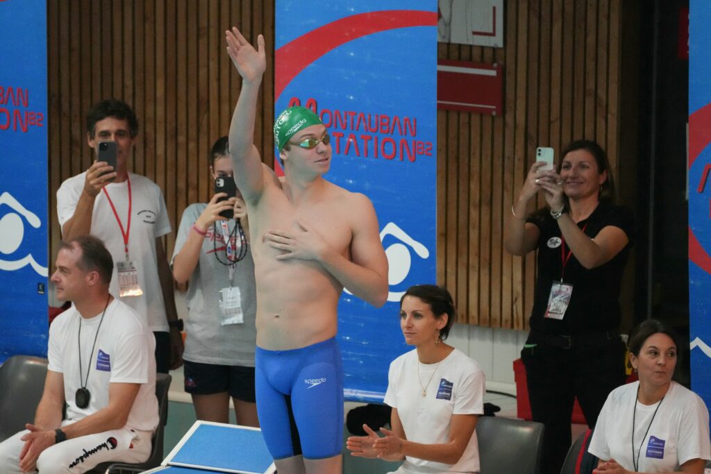 Un peu plus de trois mois après avoir ébloui la France aux Jeux olympiques de Paris, le phénomène Léon Marchand a retrouvé “son milieu naturel” dimanche lors d’une compétition interclubs à Montauban, où tous les regards étaient braqués sur lui.Capuche sur la tête, le Toulousain de 22 ans a cru revivre son adolescence en descendant du bus qui l’a conduit de la Ville rose à Montauban tôt dimanche matin.Arrivé au milieu de ses coéquipiers du club des Dauphins du TOEC, la coqueluche du public français à Paris a participé à sa seule compétition sur le territoire national après les Jeux, avant de regagner les Etats-Unis où il s’entraîne à l’année.”Il pourrait se la jouer star de la natation mondiale mais il redevient un nageur lambda parmi les autres nageurs lambdas qui sont ici”, assure le directeur général des Dauphins du TOEC Michel Coloma.- “Compétition familiale” -Assis en tribune comme les autres en attendant ses épreuves, Léon Marchand a pu savourer une journée presque banale, si l’on excepte les paires d’yeux qui l’accompagnaient dans ses moindres faits et gestes… et son écrasante domination sur la concurrence.”Cela me fait du bien de faire des compétitions avec beaucoup moins d’enjeu”, expliquait-il dans un entretien à l’AFP fin octobre, lors de sa tournée triomphale passée par la Chine, la Corée du Sud et Singapour.Après avoir fait le tour du monde, Marchand a paru ravi d’être à la maison, lors d’une journée de récréation après “l’overdose” vécue en Asie.”Il a vécu des moments compliqués avec une foule de nageurs qui venaient faire la queue pour se prendre en photo avec lui”, souligne son entraîneur Michel Coloma.”On a voulu qu’il retrouve son milieu naturel, familial, une compétition tranquille avec de l’ambiance”, ajoute-t-il. Léon Marchand a partagé la lumière d’une compétition régionale décidément relevée, puisque la vice-championne olympique du 1.500m nage libre Anastasiia Kirpichnikova était également présente, tout comme le champion paralympique du 400 m nage libre Ugo Didier, Toulousain lui aussi.Et même si le public n’avait pas accès à la piscine de Montauban pour éviter la cohue, les quelque 500 nageurs prenant part aux courses ont pu profiter de la présence du champion originaire du coin.A chaque fois que “le Roi Léon” s’est approché de son plot de départ pour les quatre courses auxquelles il a pris part, les applaudissements sont tombés des gradins où les autres nageurs attendaient leur tour.Parmi eux, Joan Massot, né lui aussi en 2002 et qui a ferraillé face à la future star lors de son adolescence, avant que le Toulousain ne change de galaxie.”Aux alentours de 13, 14 ans, j’étais devant lui, on était les deux nageurs régionaux, au fil des années c’est devenu plus ou moins mon rival”, sourit le nageur qui s’est retrouvé dans le couloir voisin de Marchand lors du 4×100 m 4 nages et du 200 m brasse.- “C’est pas tous les jours…” -Comme à l’Aréna la Défense, où le Toulousain a bâti son palmarès olympique hors-normes cet été, le public en a profité pour hurler à chaque fois que son protégé sortait la tête de l’eau, et pour admirer sa coulée, “la meilleure du monde” selon Joan Massot.Sans surprise, le quadruple médaillé d’or a survolé la course, terminant sans forcer en 2 min 06 sec 12/100, à quatre secondes de son record de France, mais 11 secondes devant Joan Massot, pas rancunier.”Je reste dans mon objectif, Léon c’est trop monstrueux ce qu’il fait, il est trop loin, mais ça donne une pression en plus, ça fait plaisir de concourir à côté du recordman du monde”, savoure le nageur de Montpellier.”C’est pas tous les jours qu’on a un quadruple champion olympique”, confirme Jorge Rodrigues, bénévole de 54 ans qui s’affaire depuis la veille pour accueillir les nageurs et les plus de 50 journalistes accrédités.”Je l’ai croisé en ne sachant pas qui il était, il était de dos, il est passé inaperçu”, s’est amusé le Montalbanais.