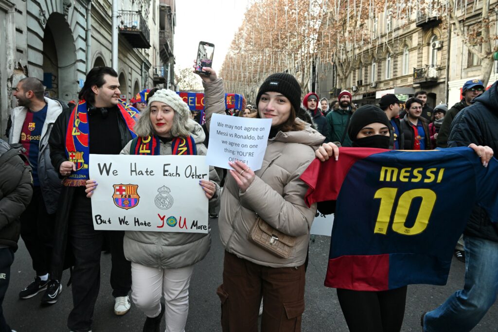 Supporters du Real ou du Barça, déplacés des régions séparatistes, artistes ou intellos: à Tbilissi, les manifestants pro-UE affichent leur pluralité en défilant par petits groupes, unis dans leur bras-de-fer avec le gouvernement géorgien, accusé de dérive autoritaire.Dimanche après-midi, une centaine de fans du Real Madrid et du FC Barcelone, reconnaissables à leurs écharpes et t-shirts, s’élancent de la Philharmonie pour rallier le Parlement.Un Clasico en vue? Non. “Nous protestons ensemble contre notre gouvernement pro-russe”, explique à l’AFP Giorgi Mantidze, un drapeau du Barça sur les épaules.Leur passion pour les deux grands d’Espagne n’a pas grand-chose à voir avec la crise politique que traverse ce pays du Caucase depuis que le parti qui le dirige, Rêve géorgien, a revendiqué la victoire aux législatives du 26 octobre – qualifiées de truquées par l’opposition – et que le gouvernement a décidé fin novembre de suspendre jusqu’en 2028 toute négociation d’adhésion à l’UE.Mais puisque “les fans du Barça et du Real Madrid ont l’habitude de s’affronter”, souligne Ana Tepnadze, 18 ans, supportrice du Barça – tandis que sa mère penche pour le Real -, ils montrent ici qu’ils “aiment (leur) pays au-dessus de n’importe quel club”.”Notre pays a besoin d’unité. C’est donc, pour nous, une sorte de vitrine pour donner l’exemple aux autres”, abonde Shota Natenadze, 29 ans, qui brandit son écharpe du Real.Étudiants d’écoles de commerce, artistes, archéologues ou même vétérinaires: ce dimanche, une dizaine de groupes rassemblant des manifestants sous une identité spécifique ont défilé dans les rues de la capitale.Leur point de ralliement reste le Parlement, symbole du pouvoir accusé de vouloir remettre la Géorgie dans l’orbite de Moscou. Et de leur demande de nouvelles élections.- Costume médiéval -Ingénieur dans l’intelligence artificielle, Shota Natenadze était déjà là, vendredi, avec d’autres Géorgiens travaillant dans son secteur.Une façon de montrer la “pluralité et la diversité” de personnes qui “malgré leur différence d’opinion, peuvent se lever pour un but commun”, souligne-t-il.Des déplacés d’Abkhazie, une province séparatiste dont Moscou reconnait l’indépendance et où elle maintient une présence militaire depuis une courte mais sanglante guerre avec la Géorgie en 2008, scandent les noms des villes de leur région comme faisant partie du territoire géorgien.A quelques mètres de là, Akaki Makatsaria, 27 ans, venu avec le groupe des artistes, détonne avec son casque médiéval, son gilet en cuir clouté et ses brassards d’armure de “style byzantin”.”Le gouvernement illégitime dit qu’il est le seul à défendre la culture géorgienne, que l’Europe est remplie de dégénérés qui veulent détruire la culture géorgienne”, mais il ne fournit “aucun soutien” pour “la protection de la culture historique de la Géorgie”, affirme cet adepte de la reconstitution historique.- “Jeu d’identification” -Plus discrète, Nino Kavshbaia, 25 ans, est venue avec les adeptes du jeu télévisé “Quoi? Où? Quand?”, créé en URSS dans les années 1970 et considéré comme un hobby d’intellectuels.Vendredi, au premier jour de ces petits rassemblements éparpillés dans la capitale, c’est avec ses confrères que cette avocate a manifesté.Pour celle qui “essaye d’être ici tous les jours”, ce “petit jeu d’identification” rend l’exercice “intéressant”.Car il faut se remotiver après plus de deux semaines de protestations quotidiennes qui n’ont pas jusqu’ici provoqué d’infléchissement du pouvoir.Celui-ci a fait arrêter plusieurs leaders de l’opposition et a juré d’écraser, si besoin avec la force, un mouvement qu’il accuse d’être fomenté depuis l’étranger.La police a interpelé plus de 400 personnes, dont la majorité a affirmé avoir subi des violences, selon l’ONG Social Justice Centre, qui fournit une aide juridique aux détenus.Drapé dans son drapeau du Barça, Giorgi Merebashvili estime qu’il est “important de diversifier” le mouvement pour plus de “flexibilité”. Ainsi, la police “ne peut pas maîtriser toutes les petites manifestations dans la ville”, dit-il. Pour durer, résume cet employé dans la high-tech, les opposants doivent “trouver de nouvelles méthodes”.