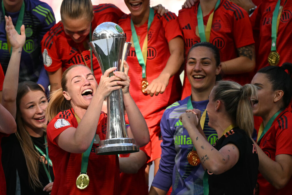 Le Bayern Munich féminin a gagné la Coupe d’Allemagne en battant le Werder Brême 4 à 2 en finale, jeudi à Cologne, et réussi le premier doublé de son histoire après son titre en Championnat.Les Bavaroises avaient été sacrées championnes de la Bundesliga pour la troisième fois consécutive dimanche grâce à leur victoire (3-1) à domicile contre Fribourg.Dans cette finale de Coupe disputée devant 45.146 spectateurs (guichets fermés), l’attaquante allemande Lea Schueller a inscrit un triplé.”Après le titre en Championnat, on ne s’est pas laissé aller, mais là ça va être différent!”, a affirmé la buteuse pour lancer les célébrations.Le Bayern va perdre son entraîneur norvégien Alexander Straus qui va rejoindre Angel City FC, la franchise de la Ligue américaine installée à Los Angeles, après trois saisons en Bavière.La finale de jeudi était la première depuis 2014 dans laquelle ne figurait pas le grand club historique du football allemand chez les femmes, Wolfsbourg, vainqueur des onze éditions précédentes.