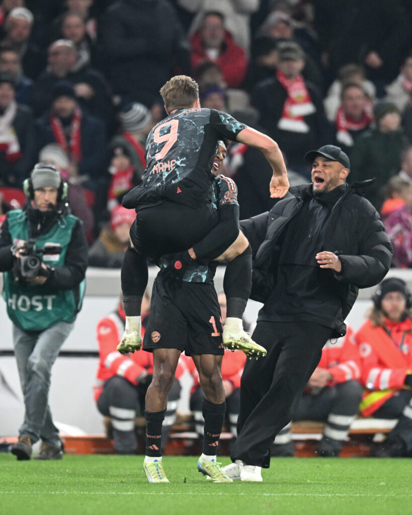 A cinq jours de recevoir le Bayer Leverkusen en huitièmes de finale aller de la Ligue des champions, le Bayern Munich a renversé Stuttgart au Neckarstadion (2-1), un succès qui lui assure au minimum huit points d’avance à dix journées de la fin.Avec 61 points, les hommes de Vincent Kompany comptent onze points de plus que Leverkusen (50), champion en titre et qui est donc dans l’obligation de s’imposer à Francfort samedi (18h30), pour revenir à huit points des Munichois et conserver un très mince espoir de décrocher un deuxième titre consécutif avant les 10 dernières rencontres.Les Munichois font ainsi le plein de confiance et vont disposer de de cinq jours pour préparer leur huitième de finale aller de la Ligue des champions contre le Bayer Leverkusen (mercredi 21h00) dans leur Allianz Arena.Dans ce derby du sud de l’Allemagne, la partie n’a pas été de tout repos pour le Bayern, privé pour ce déplacement de Joshua Kimmich, insuffisamment remis d’une blessure à un tendon, d’Aleksandar Pavlovic et Sacha Boey, malades. Le défenseur central français Dayot Upamecano a débuté la rencontre sur le banc, Kompany lui préférant l’Anglais Eric Dier.Au coeur d’une première période équilibrée, c’est Stuttgart qui a ouvert le score peu après la demi-heure de jeu, d’une superbe frappe du milieu de terrain Angelo Stiller venue se loger en pleine lucarne de Manuel Neuer, qui n’a rien pu faire. L’action de Stuttgart a démarré sur une perte de balle de Leroy Sané, alors même qu’il avait pris le meilleur sur son adversaire.- Olise et Coman buteurs -Juste avant la pause, Sané s’est rattrapé avec une passe décisive millimétrée dans la profondeur pour Michael Olise, parti à l’extrême limite d’une position de hors-jeu et qui n’a laissé aucune chance à Alexander Nübel (45e). Le but a été validé après trois minutes de vérification et de consultation de la VAR.Juste après l’heure de jeu, sur une relance courte de Nübel sur Stiller, Leon Goretzka a récupéré la balle dans la surface de réparation et a donné l’avantage au Bayern, avant d’aller célébrer son but avec les supporters munichois venus en nombre, et qui ont fêté les 125 ans du club, fondé le 27 février 1900.Entré en jeu à la place de Sané à la 62e minute, Kingsley Coman a tué tout suspense à la 90e minute, en devançant une sortie loin de son but de Nübel et en cadrant sa frappe de 35 mètres dans la cage vide.C’est la deuxième fois cette saison que les coéquipiers de Manuel Neuer parviennent à renverser une rencontre et à s’imposer. A Wolfsburg en tout début de saison, ils avaient été menés 2 à 1 en cours de rencontre avant de s’imposer 3-2.Pour l’instant, ils réalisent leur quatrième meilleure saison en Bundesliga, loin derrière les 68 points en 24 matches du premier exercice sous Pep Guardiola en 2013/14, mais pas loin des saisons 2012/13 (63 points) et 2015/16 (62).A cette période de la saison en 2024, Leverkusen totalisait 64 points, avec 10 points d’avance sur le Bayern.