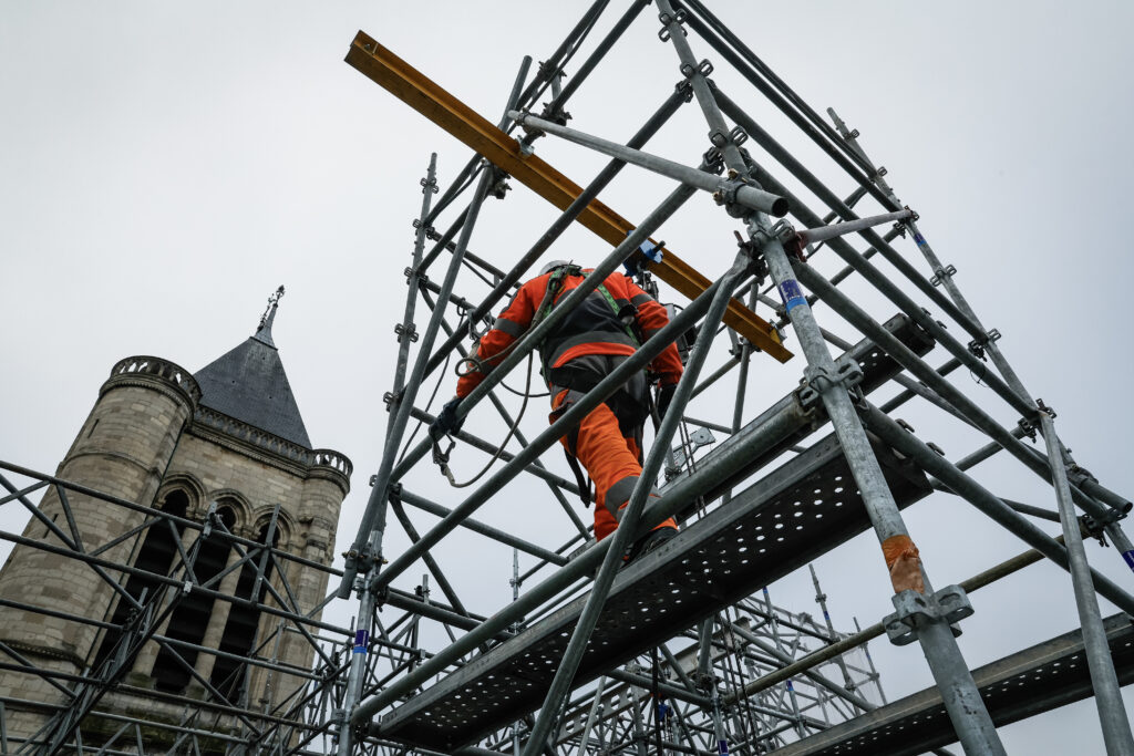 Les cliquetis des tailleurs de pierre résonnent déjà au chevet de la basilique alors que l’échafaudage monte en façade: la nécropole des rois de France à Saint-Denis va retrouver sa flèche, nouveau chantier hors normes après celui de Notre-Dame de Paris.”On ne remonte pas des flèches gothiques tous les quatre matins”, sourit Mathilde Bretz, massette et ciseau en mains. A 30 ans, la tailleuse de pierre se réjouit de participer à ce projet d’exception, tant pour son importance historique que pour les techniques traditionnelles choisies pour cette restauration. “D’habitude, on a des disqueuses, on a des tronçonneuses”, énumère la jeune “pierreuse” au côté d’un large bloc de calcaire. A Saint-Denis, pas de “pétards” pour casser la pierre et “refaire la flèche de A à Z”. L’artisane l’assure: “A cet atelier, on fait tout à la main”.Depuis le XIIe siècle, la tour occidentale de la basilique s’élançait jusqu’à 90 mètres de haut mais la foudre puis une tornade ont eu raison de la célèbre nécropole de quasiment tous les rois et reines de France depuis les Mérovingiens. En 1846, face à sa dangereuse fragilité, choix est fait de la démonter pierre par pierre. Depuis, le projet du remontage de la flèche a hanté “les mémoires et, un peu comme un serpent de mer, il remonte régulièrement à la surface”, témoigne Christophe Bottineau, architecte en chef des Monuments historiques.En 2013, la municipalité de Saint-Denis, à l’époque dirigée par Didier Paillard (PCF), relance l’initiative qui, après douze ans d’études de faisabilité et de commissions budgétaires, se concrétise: la pose de la première pierre va avoir lieu le 14 mars. – “Blockchain” du médiéval -Avant d’entamer ce remontage du chef-d’œuvre gothique, il a fallu consolider le monument médiéval pour s’assurer qu’il puisse soutenir les 2.400 tonnes de pierre. Pour susciter l’intérêt du public vis à vis de ce chantier qui va durer cinq ou six ans, un musée temporaire, qui ouvrira en septembre dans le jardin de la basilique, permettra de suivre les coulisses du travail des artisans.Pour Julien de Saint-Jores, directeur de l’association Suivez la Flèche, ce nouveau parcours de visite se veut dans “l’esprit des chantiers médiévaux, avec cette collaboration entre les tailleurs de pierre et les taillandiers au pied du monument, sous les yeux du public.”A l’ancienne mais inscrit dans son temps: l’association, maître d’œuvre du chantier, a conçu ce musée éphémère en y incluant casques de réalité virtuelle et “cube immersif” dans lequel sera projeté un film à 360 degrés, pour plonger dans l’histoire de la basilique.Un mécénat participatif a également été lancé en avril pour recueillir entre 3,5 et 5 millions d’euros via le parrainage d’une pierre précise, choisie sur la modélisation numérique en 3D de l’édifice. De l’extraction dans la carrière à sa pose sur le monument, “vous allez suivre un peu une sorte de blockchain (chaîne de blocs, ndlr) de l’histoire de votre pierre,” vante Julien de Saint-Jores.De 15 à 4.000 euros, les 15.000 pierres que compte la tour sont virtuellement en vente en sachant que pour les éléments “les plus remarquables”, comme les chimères ou le coq qui trône au sommet, les prix “pourront être supérieurs,” précise-t-il.L’appel aux âmes charitables est lancé mais le chantier au budget de 37 millions d’euros est par ailleurs financé par le fonds de solidarité interdépartemental pour l’investissement (22 millions), la région Île-de-France (cinq millions) et la Métropole du Grand Paris (quatre millions).Loin de concurrencer sa petite sœur Notre-Dame de Paris qui a déjà accueilli 860.000 personnes pour le premier mois de sa réouverture, la basilique de Saint-Denis espère que sa flèche va attirer plus que les 150.000 visiteurs annuels actuellement.Serge Santos, administrateur de la basilique pour le Centre des monuments nationaux, estime que “c’est l’aspect banlieue, sans doute, qui fait que c’est un petit peu plus compliqué” d’avoir du monde. Lui qui ne tarit pas d’anecdotes sur les gisants dans l’église veut croire que le village d’artisans et la visite virtuelle de la basilique vont permettre “une nouvelle appropriation du monument, une nouvelle manière de le découvrir.”