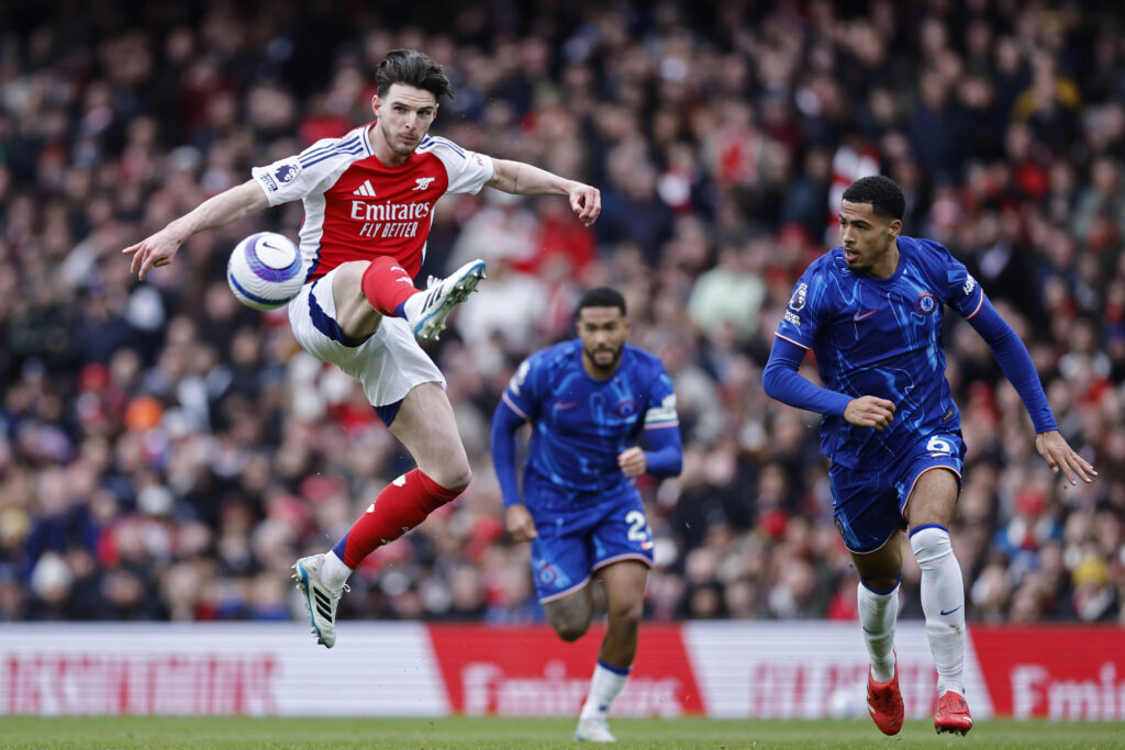 Arsenal a remporté le derby de Londres contre Chelsea (1-0) dimanche à domicile, stoppant une série de trois matches sans victoire qui a affaibli sa deuxième place.Les “Gunners” (58 pts) réduisent un peu l’écart avec le leader Liverpool (70 pts) après 29 journées et surtout remettent à quatre longueurs leur concurrent direct, Nottingham Forest (3e, 54 pts).L’équipe de Mikel Arteta avait besoin d’une victoire après une période de vaches maigres (une défaite et deux matches nuls) sur laquelle avait prospéré l’étonnant Forest.Arsenal, prochain adversaire du Real Madrid en quart de finale de Ligue des champions, a quasiment validé son ticket pour la prochaine campagne européenne, avec dix points d’avance sur Manchester City (5e, 48 pts).A l’Emirates, les locaux ont globalement maîtrisé leur sujet et fait la différence sur un corner du capitaine Martin Odegaard repris par de la tête par le milieu Mikel Merino (20e, 1-0), de nouveau utilisé comme avant-centre en l’absence de Gabriel Jesus et de Kai Havertz, blessés.Sans son créateur Cole Palmer, forfait, Chelsea a tenté de réagir en fin de première période après avoir été longtemps dominé. Et il a failli égaliser sur une reprise de Marc Cucurella que David Raya a laissé filer entre ses bras, sans conséquence (37e).Arsenal étend son invincibilité dans le derby à sept matches en championnat (cinq victoires, deux matches nuls).Chelsea (4e, 49 pts) manque de son côté l’occasion de distancer Manchester City, accroché 2-2 la veille par Brighton.Dans l’autre match de l’après-midi, Fulham (8e, 45 pts) s’est imposé 2-0 à domicile face à Tottenham (13e, 34 pts) et reste en course pour accrocher un billet européen en fin de saison.