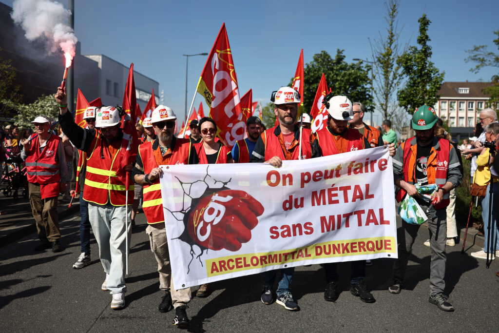 Plusieurs centaines de personnes se sont rassemblées jeudi matin à Dunkerque à l’appel de la CGT, pour protester contre le plan de suppression d’environ 600 postes annoncé par ArcelorMittal dans ses sites du Nord et de l’Est de la France, dont une majorité dans cette ville portuaire.”Confisquons les dividendes”, “Nationalisation d’ArcelorMittal”, peut-on lire sur des pancartes, en référence au propriétaire indien du géant de la sidérurgie.Arnaud, 48 ans, responsable dans la maintenance électrique, se dit “très inquiet” pour l’avenir. “Ca fait maintenant quelques années où toutes les installations dégradent, on n’a quasiment plus de budget de maintenance (…) notre usine est en train de crouler, on voudrait fermer, mais on ne s’y prendrait pas mieux”.Plusieurs responsables politiques, dont le premier secrétaire du parti socialiste Olivier Faure, le député divers gauche François Ruffin et la secrétaire nationale des Écologistes Marine Tondelier étaient présents aux côtés des manifestants.Ils ont dénoncé dans un communiqué ces suppressions d’emplois alors que le géant de la sidérurgie est bénéficiaire et a été soutenu par des aides publiques ces dernières années.”Si ArcelorMittal ne veut pas prendre ses responsabilités, que l’État prenne les siennes, et que nous puissions avoir, dans cette logique de souveraineté retrouvée, (…) la capacité pour l’État à nationaliser, de manière temporaire ou définitive, en sorte que les salariés ne soient pas abandonnés”, a déclaré Olivier Faure.Outre une intervention de l’État, les élus ont réclamé la relance du projet de décarbonation des sites, une protection douanière face à la concurrence de l’acier chinois et une entrée de l’État au capital. Ils réclament “zéro licenciement”. Fin 2024, ArcelorMittal avait suspendu son projet d’investissement massif -à hauteur de 1,8 milliard d’euros dont plus de 800 millions d’aide promise par l’Etat- dans la décarbonation de ses hauts fourneaux de Dunkerque, en arguant de la non compétitivité de l’acier produit en Europe.Le sidérurgiste a aussi annoncé ces dernières semaines un plan d’économies pour regagner sa compétitivité en Europe, portant sur 1.400 postes. Le plan présenté le 23 avril prévoit la suppression de quelque 600 postes dans le Nord de la France, touchant les fonctions support – délocalisées vers l’Inde – mais aussi la production.Ces suppressions concernent les usines de Dunkerque et Mardyck dans le Nord, mais aussi Florange (Moselle), Basse-Indre (Loire-Atlantique), Mouzon (Ardennes), Desvres (Pas-de-Calais) et Montataire (Oise), qui emploient au total quelque 7.100 salariés.Dunkerque est le site le plus touché, avec plus de 290 postes concernés, dont 177 dans l’opérationnel, selon la CGT.