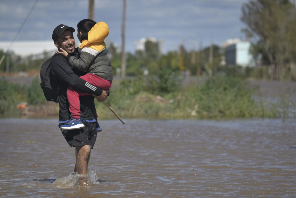 L’eau reflue dans la ville portuaire argentine de Bahia Blanca, touchée par des inondations soudaines vendredi responsables de la mort d’au moins 16 personnes, et où lundi les opérations de recherches s’activent pour retrouver les corps de deux enfants officiellement portés disparus et recenser la centaine de personnes recherchées par leurs proches.”L’eau a baissé partout” dans le périmètre de la ville de 350.000 habitants, l’un des principaux ports d’Argentine à 600 km au sud de Buenos Aires, a indiqué lundi à la radio AM750 le ministre de la Sécurité de Buenos Aires, Javier Alonso, bien que des localités voisines soient encore totalement sous les eaux. Deux sœurs âgées de 1 et 5 ans, emportées par le courant avec leur mère qui a survécu, sont recherchées. Le corps d’un homme qui a tenté de les secourir a été retrouvé dimanche après-midi.Selon M. Alonso elles sont les seules personnes “signalées comme disparues auprès du procureur”. Plus de 100 signalements de personnes recherchées par leurs proches ont été réalisés auprès des autorités locales qui disent espérer que ces dernières sont simplement “esseulées” en raison de l’absence de moyens de communication. Les pluies ont commencé à s’abattre tôt vendredi matin et en quelques heures 400 millimètres d’eau sont tombés, presque autant que ce qu’il pleut d’habitude en un an dans la région.La rivière Maldonado, qui traverse Bahia Blanca, est sortie de son lit et des quartiers entiers ont été submergés jusqu’au toit des maisons.- “Pas d’infrastructure” -Les opérations de nettoyage et de recensement des dégâts ont également commencé dans certains secteurs de la ville où “il y a un mètre et demi de boue”, a ajouté M. Alonso.Le maire de Bahia Blanca, Federico Susbielles, a déjà estimé les dégâts à 370 millions d’euros. “La plupart des morts sont (…) des personnes très âgées qui se trouvaient dans des maisons de retraite ou dans des foyers qui s’occupent de personnes âgées”, avait-il déclaré dimanche lors d’une conférence de presse.Quelque 200 pompiers sont attendus lundi accompagnés de près de 800 policiers pour la sécurisation des installations par crainte de pillages.Le président Javier Milei a décrété trois jours de deuil national. “Tous les domaines du gouvernement national continueront à se consacrer (…) à l’assistance aux sinistrés en ce moment douloureux pour tous les Argentins”, a écrit la présidence dans un communiqué.Plusieurs tonnes de “fournitures de base nécessaires face à ce type d’urgence” ont été transportées par l’Armée de l’air et un hôpital mobile de 40 places a été installé, a indiqué la présidence.Le Pape François, de nationalité argentine et hospitalisé depuis plus de trois semaines, “exprime sa proximité avec les personnes touchées”, a fait savoir le Vatican.”Mes condoléances aux familles qui ont perdu leurs proches et beaucoup de force à tous ceux qui traversent une période difficile”, a écrit sur son compte Instagram la star du football et idole nationale Lionel Messi.Ce désastre “est un exemple clair du changement climatique”, a estimé Andrea Dufourg, directeur de la politique environnementale de la ville d’Ituzaingo, près de Buenos Aires. “Nous n’avons d’autre choix que de préparer les villes, d’éduquer les citoyens et de mettre en place des systèmes d’alerte précoce efficaces”, a-t-elle ajouté.Bahia Blanca avait déjà subi une violente tempête en décembre 2023, qui avait fait 13 morts et provoqué des dégâts considérables.La ministre de la Sécurité, Patricia Bullrich, a affirmé que la tragédie ne pouvait être prévue. “Il est tombé 300 millimètres en huit heures dans une ville qui a 190 millimètres par an, il n’y a pas d’infrastructure qui puisse supporter cela, dans un phénomène climatique qui détruit tout”, a-t-elle dit au journal Infobae.Les pluies ont affecté toute la région, cœur agricole de l’Argentine. Selon des sources du secteur, deux millions d’hectares de terres ont été endommagés.