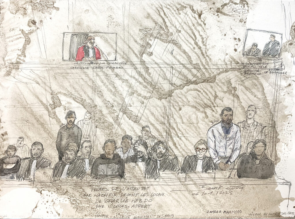 L’homme accusé de l’attaque à la feuille de boucher devant les anciens locaux de Charlie Hebdo a justifié jeudi son geste par son éducation religieuse stricte au Pakistan, imprégnée de haine envers ceux qui “se moquent du prophète” de l’islam.”Aujourd’hui je reconnais que ce j’ai fait est un acte de terrorisme. Je comprends”, a déclaré Zaheer Mahmoud depuis le box des accusés devant la cour d’assises spéciale des mineurs, avant d’expliquer qu’à l’époque des faits il pensait “faire le bien pour l’islam”. Le principal accusé a raconté son enfance au Pakistan dans une famille pratiquante avec un père religieux. “Dans mon pays, si quelqu’un se moque du Prophète il est puni de mort car il faut respecter les religions”, a expliqué Zaheer Mahmoud. L’attaque a eu lieu le 25 septembre 2020, en plein procès des attentats de janvier 2015 ayant ciblé notamment Charlie Hebdo. L’hebdomadaire satirique faisait l’objet de nouvelles menaces depuis qu’il avait republié les caricatures de Mahomet le jour de l’ouverture de l’audience. Aux alentours de 11H40, Zaheer Mahmood était arrivé devant un immeuble de la rue Nicolas-Appert (XIe arrondissement de Paris), armé d’une feuille de boucher. Il avait blessé grièvement deux employés de l’agence de presse Premières Lignes, pensant s’attaquer à des salariés de Charlie Hebdo, ignorant que le journal avait quitté les locaux après l’attentat de 2015. En garde à vue, l’assaillant avait justifié son geste par ses convictions religieuses: “J’ai réglé une injustice, ils avaient commis un crime en publiant les caricatures, ils sont bien punis”. “C’est ce que je pensais à cette époque-là, c’est vrai”, a soupiré Zaheer Mahmoud qui a multiplié les demandes de pardon aux deux victimes de l’attaque depuis le début de son procès. À la barre, il a expliqué le choc ressenti en arrivant seul en France, clandestinement, en 2018. Éloigné de sa famille dans un pays qu’il ne connaissait pas, il a raconté avoir trouvé du réconfort sur les réseaux sociaux. C’est sur TikTok qu’il se serait pris de passion pour les prêches de Khadim Hussain Rizvi, fondateur d’un parti islamiste radical pakistanais prônant la décapitation pour ceux qui sont accusés de blasphème.”J’étais influencé, on nous disait que c’était notre devoir”, a-t-il expliqué. À l’en croire, Zaheer Mahmoud aurait pris conscience de la gravité de ses actes en détention. “Je sais que j’ai commis une grave erreur”.”Vous dites beaucoup que vous regrettez mais auriez-vous les mêmes regrets si les personnes que vous avez attaquées avaient bien été des journalistes de Charlie Hebdo”? l’a interrogée la présidente. – “Oui tout à fait”, a répondu Zaheer Mahmoud. Son interrogatoire doit se poursuivre vendredi.