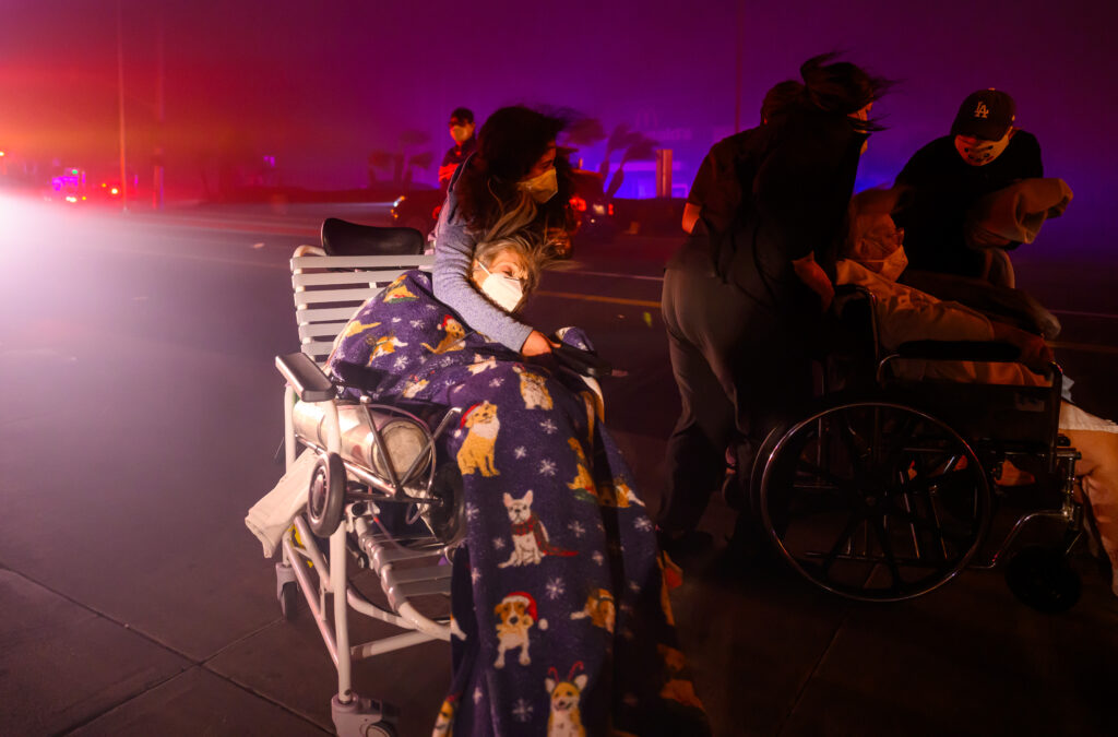 Au moins cinq personnes sont mortes dans les féroces incendies qui sévissent mercredi autour de Los Angeles et ravagent désormais les collines d’Hollywood, colportés par des vents violents.Environ 1.500 bâtiments ont été détruits et plus de 100.000 habitants de la mégapole américaine ont été forcés de fuir face aux flammes.Ce bilan pourrait encore s’alourdir, selon les autorités.Los Angeles est balayée par “des vents de la force d’un ouragan combinés à des conditions de sécheresse extrême”, a résumé la maire Karen Bass, lors d’un point presse mercredi soir.Les rafales, qui ont soufflé parfois jusqu’à 160 km/h mercredi, transportent parfois des braises sur des kilomètres. Un premier incendie s’est déclaré mardi matin, dans les collines du quartier huppé de Pacific Palisades, qui abrite des célébrités et de nombreuses villas à plusieurs millions de dollars. Depuis, les foyers se sont multipliés et explosent souvent très rapidement, en l’espace de quelques minutes. Après la vallée de San Fernando et Altadena, un nouvel incendie s’est déclaré mercredi soir dans les collines d’Hollywood, à quelques centaines de mètres du fameux boulevard aux étoiles.L’artère s’est rapidement remplie d’automobilistes stressés, bloqués dans les bouchons et qui tentaient d’évacuer sous les klaxons, ont constaté des journalistes de l’AFP.”Nous n’avons pas assez de pompiers dans le comté de Los Angeles pour faire face à cette situation”, a déploré Anthony Marrone, le chef des pompiers du comté de Los Angeles.Altadena, située au nord de Los Angeles, ressemble à une zone récemment bombardée, avec des bâtiments encore en feu et des habitations réduites en cendres. William Gonzales y est revenu voir son domicile, évacué la veille.Il confie à l’AFP “avoir presque tout perdu”: “les flammes ont englouti nos rêves. Il n’y plus que que des cendres ici”.Jesus Hernandez assure, lui, que sa maison, comme les nombreuses autres dévorées par le brasier, “ne vaut plus rien”. “Les voir partir (en flammes) en quelques secondes, c’est vraiment triste”, souffle-t-il.- Bouches d’incendie vides -D’imposants panaches de fumée noire s’élèvent au-dessus de la deuxième ville des Etats-Unis, avec l’odeur âcre du brûlé dans l’air. Les vents posent un “danger mortel”, selon les services météorologiques.Les habitants ont été invités par les autorités à économiser l’eau, car trois réservoirs alimentant des bouches d’incendie ont été vidés par le combat contre les flammes à Pacific Palisades.”Combattre ces incendies avec les systèmes d’eau urbains, c’est un vrai défi”, a souligné la responsable du service municipal de l’eau et de l’électricité (LADWP), Janisse Quinones.En plus des vents, le météorologiste Daniel Swain pointe notamment vers “le manque de pluie et l’anormale chaleur et sécheresse depuis six mois” pour expliquer ces sinistres.Le président Joe Biden, en déplacement en Californie, s’est rendu auprès d’eux mercredi dans une caserne de Santa Monica. La veille, il avait débloqué des aides fédérales pour faciliter le combat contre les flammes.Sur sa plateforme Truth Social, son successeur Donald Trump s’en est pris au gouverneur démocrate de Californie Gavin Newsom, l’une de ses bêtes noires.Il l’a désigné comme “responsable” de cette “véritable catastrophe” en affirmant – faussement – que le manque d’eau dont souffre l’Etat était due à ses politiques environnementales, répétant ses propos fantaisistes selon lesquels l’eau de pluie était détournée pour protéger un “poisson inutile”.- Cérémonie reportée -Les incendies ont provoqué l’annulation de nombreuses premières de films et des fermetures de sites, comme celle du parc d’attractions Universal Studios Hollywood.Les nominations aux Oscars, qui doivent avoir lieu le 17 janvier ont été repoussées au 19. La cérémonie des Critics Choice Awards qui devait se tenir dimanche a également été reportée, et les nominations aux SAG Awards (SAG), les récompenses du syndicat des acteurs américains, ont été annoncées par simple communiqué de presse.Plusieurs célébrités hollywoodiennes figurent parmi les dizaines de milliers de personnes ayant reçu l’ordre d’évacuer.Connu pour son rôle de Luke Skywalker dans la saga “Star Wars”, Mark Hamill a ainsi annoncé sur Instagram qu’il avait dû quitter mardi sa maison à Malibu, ville prisée des stars.Les scientifiques rappellent régulièrement que le changement climatique augmente la fréquence des événements météorologiques extrêmes. Des avertissements qui résonnent désormais dans la chair des Angelenos.”C’est probablement le changement climatique qui affecte tout. Je suis sûre que ça a ajouté à tout ça”, soupire Debbie Collins, devant sa boutique menacée par les flammes à Altadena. “Le monde va vraiment mal et nous devons en faire plus.”