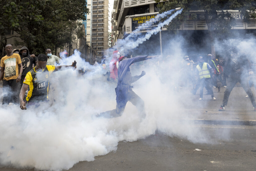 Security forces and hundreds of men armed with whips and clubs clashed with protesters in Kenya on Tuesday, with a police officer’s shooting of an unarmed bystander triggering widespread anger.Tensions were already high in the east African country as it marks a year since massive Gen Z-led protests over the economy, and fresh demonstrations have …