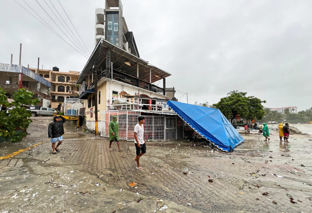 Hurricane Erick killed at least two people as it swept through southern Mexico causing significant damage to coastal communities before weakening to a low-pressure system Thursday night, authorities said.A man was electrocuted while helping with debris removal in the southern Oaxaca state, where Erick made landfall, after handling high-voltage cables near a stream, the state government said. A child died in neighboring Guerrero state after being swept away by a swollen stream as his mother tried to carry him across in the town of San Marcos, civil protection authorities reported.The US National Hurricane Center’s latest advisory at 0300 GMT said Erick had weakened overnight to a tropical storm located 95 miles (155 kilometers) from Acapulco port, with sustained winds of 30 mph (50 kmh) as it moved across southern Mexico on Thursday.Coastal communities in Oaxaca including Lagunas de Chacahua, home to around 2,800 people, were directly hit by the storm, which destroyed thatched roofs and flooded streets.”It was very strong, very ugly… the entire town is homeless, without clothes, we have no help,” Francisca Avila, a 45-year-old housewife, told AFP, as she surveyed the loss of most of her belongings.In the tourist town of Puerto Escondido, residents and emergency personnel worked to drain flooded streets and clear debris left behind as the storm knocked over trees and street signs and buried boats under sand on the beach.Much of the town of about 30,000 people was left without electricity or cellphone coverage.The water “had never hit with this magnitude” in Puerto Escondido, 44-year-old merchant Luis Alberto Gil, whose shop was among those flooded, told AFP.President Claudia Sheinbaum announced during her morning briefing that heavy rains are still expected in the southern states of Guerrero, Oaxaca, and Chiapas, as well as Veracruz and Puebla. She thanked the population for following the authorities’ recommendations “very responsibly,” in a message shared on her social media. The president reported 15 road sections closed in the state of Oaxaca, as well as more than 123,000 users affected by power outages.- Memories of Otis – Mexico sees major storms every year, usually between May and November, on both its Pacific and Caribbean coasts.In October 2023, Acapulco, a major port and beach resort in Guerrero, was pummeled by Hurricane Otis, a powerful Category 5 storm that killed dozens of people.Hurricane John, another Category 3 storm that hit in September last year, caused about 15 deaths.Sheinbaum had urged people to avoid going out and advised those living in low-lying areas or near rivers to move to shelters — some 2,000 of which had been set up in Chiapas, Guerrero and Oaxaca in anticipation.”Since (Erick) just made landfall, we are in contact with the Defense (department) and the Navy, who are in the area, and we will be able to inform in a few hours what the effects are on these populations,” she said at her daily press conference Thursday morning.Restaurants remained shuttered in Puerto Escondido even though some tourists insisted on staying and riding out the storm.Around 250 miles (400 kilometers) north along the Pacific coast, Acapulco — a major port and resort city famous for its nightlife — was largely deserted Thursday as residents heeded calls to hunker down, with shops boarded up and tourist boats grounded.Many had stocked up the day before on food, water and gasoline.