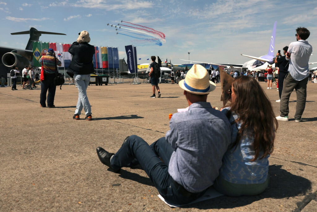 “Wow, regarde Eva !” Emma pointe son doigt vers le ciel, émerveillée. Au-dessus d’elle et son amie, un avion imposant vole bas. Devant elles, à l’arrêt, un Rafale 362 de l’armée de l’air. Les deux jeunes filles, venues de Bordeaux spécialement pour le salon du Bourget, ne savent où donner de la tête.Emma, 21 ans, étudiante en licence de maintenance aéronautique et apprentie chez l’avionneur français Dassault, est venue “montrer les différents types d’avions à Eva”. Mais cette dernière n’est pas novice, elle est apprentie chez Thales. “On adore l’aéronautique, on est passionnées. Ici, on peut voir les avions de plus près et échanger avec les professionnels”, s’enthousiasme Eva.Ce vendredi, premier jour d’ouverture de la 55e édition du Salon international de l’aéronautique et de l’espace (SIAE) au grand public, elles ne sont pas les seules à venir braver la chaleur du soleil sur le tarmac: près de 100.000 visiteurs par jour sont attendus sur le week-end. Dès l’ouverture à 08H30 à l’aéroport du Bourget, à 9 km au nord de Paris, une foule commence à s’amasser autour des appareils exposés: gros porteurs, hélicoptères, F-35 américains et drones d’attaque.Les visiteurs étrangers sont nombreux, les familles également. Les enfants, ébahis, se pressent contre les barrières qui protègent les appareils.Cette année, pour la première fois, le salon met à l’honneur les femmes dans les secteurs de l’aéronautique et du spatial.En France, “il y a moins de 10% de filles dans certains CFA (centres de formation des apprentis, NDLR), 27% de femmes dans le spatial et 30% dans l’aéronautique”, rappelle dans un communiqué le SIAE.Toute la journée, des chercheuses, pilotes, mécaniciennes, expertes, prennent la parole devant des jeunes filles inspirées.”Rien n’est impossible, rien n’est même difficile”, souligne une ingénieure en aéronautique.Dans un stand, casque de réalité virtuelle sur la tête, Salomé s’y voit déjà. Lentement, elle déplace à l’aide de manettes connectées des pièces utilisées par les mécaniciens de l’aéronautique pour les moteurs d’avions.”Je veux devenir ingénieure en aéronautique et aérospatial”, assure-t-elle du haut de ses 18 ans. – Regards tournés vers le ciel -Dans un des halls, un espace est dédié à la découverte des professions de l’aéronautique. Des dizaines de professionnels échangent avec des étudiants.Nadia Sainson, 51 ans, attend patiemment son fils qui discute avec un employeur.”Il a un BTS aéronautique et cherche maintenant une alternance. C’est le meilleur endroit pour postuler”, sourit-elle.Derrière elle, dans un micro, une femme interpelle la foule: “Si vous êtes étudiant, alternant, on a une formation à vous proposer !”Le long de l’allée centrale, un pavillon de 2.500 m2 abrite le “Paris Space Hub”, hall entièrement consacré au domaine spatial.Fermé toute la matinée pour accueillir Emmanuel Macron, il fait le plein dès le début de l’après-midi.Les visiteurs peuvent y voir des maquettes de satellites, de sondeurs d’atmosphère ou de missiles balistiques tactiques et échanger avec des experts.”C’est un peu trop technique”, regrette Vanessa Cent, 49 ans, “mais j’admire la technologie”.”C’est bien de mettre le spatial en avant”, abonde son père, Dominique Cent, 72 ans. “Il faut que la France innove et évolue, surtout avec tout ce qu’il se passe dans le monde”, ajoute-t-il, un peu inquiet.Tout au long de la journée, les démonstrations de haut vol attirent toute l’attention. “Dans quelques instants, un avion va larguer des parachutistes”, est-il annoncé au mégaphone.Mains en visière, tous les regards se tournent vers le ciel. Les traînées bleues, blanches et rouges laissées par les membres de l’équipe de parachutistes ambassadrice de l’Armée française de l’air et de l’espace entraînent des applaudissements fournis.Un peu après, les voltiges d’un rafale et son bruit puissant finissent de ravir la foule.Sofiane, 38 ans, passionné d’aéronautique, est ravi.”Mon père m’a emmené ici quand j’étais petit. Et maintenant, j’y amène mon fils”, explique-t-il en se tournant vers Elyas, six ans. S’il a été particulièrement impressionné par les hélicoptères et l’Airbus A400M exposés, Elyas avoue “moi, j’ai surtout hâte de voir l’avion qui a transporté le PSG”.