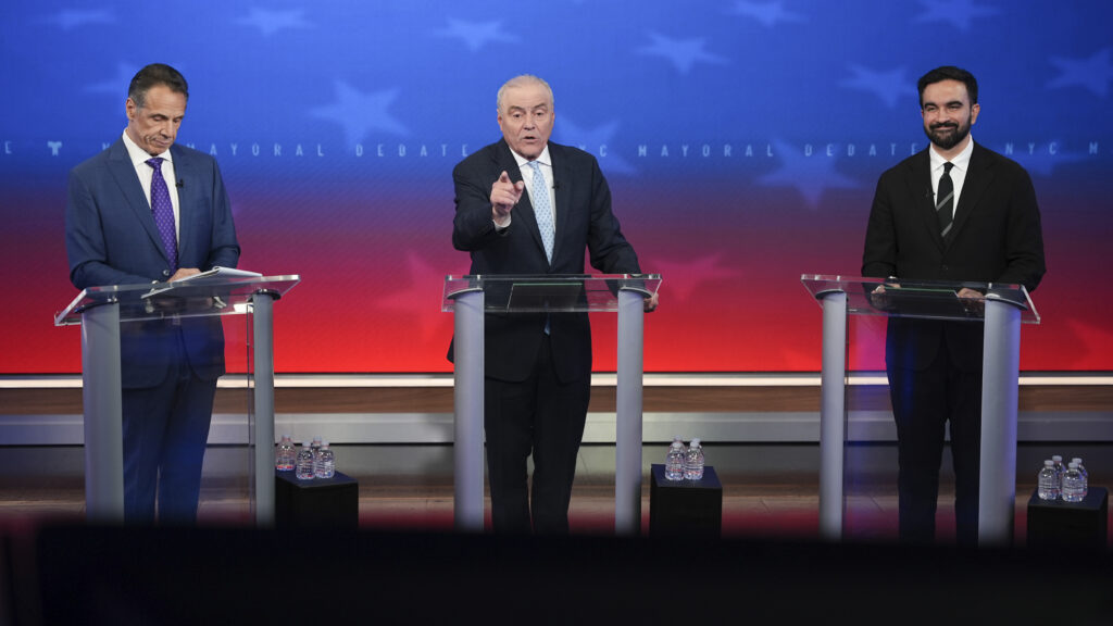 A socialist, an accused molester and a vigilante all hoping to be New York’s next mayor clashed in a debate with “high levels of testosterone” Thursday as the unpredictable campaign enters the homestretch.Democratic candidate and frontrunner Zohran Mamdani, independent former New York governor Andrew Cuomo and Republican Curtis Sliwa pitched to voters in the first of two televised debates ahead of the November 4 election. Early voting begins on October 25.Mamdani attacked Cuomo for his alleged sexual misconduct and controversial governing record “sending seniors to their death in nursing homes” during the Covid pandemic.”Thank God I’m not a professional politician because they have created the crime crisis in this city,” Sliwa said, gesturing at his two rivals.”There’s high levels of testosterone in this room,” he said later.Mamdani pulled off a stunning upset in the Democratic Party primary, defeating political scion Cuomo who had been the favorite for weeks, becoming the party’s official nominee.Mamdani has promised free bus services, rent freezes and city-run supermarkets, which Cuomo has panned as fanciful and unaffordable government overreach.The race to govern the city’s 8.5 million people was again upended when sitting Mayor Eric Adams, who has been engulfed in corruption allegations, quit the race without endorsing another candidate.Cuomo, 67, was the state governor from 2011 until 2021, when he resigned over sexual assault allegations.Mamdani, 33, is a state lawmaker for the city borough of Queens and has run an insurgent grass-roots campaign that has motivated young New Yorkers at a high rate.- ‘Take on Trump’ -Trump has threatened to withhold federal funds from Mamdani’s administration if he is elected, calling him a “communist.”But Mamdani said “I would make it clear to the president that I am willing to not only speak to him, but to work with him, if it means delivering on lowering the cost of living for New York.”Cuomo warned “Trump will take over New York City, and it will be Mayor Trump” if Mamdani won — mirroring the takeover of much of the administration of the capital Washington.Trump said Wednesday he had “terminated” the $16 billion Hudson Gateway tunnel linking New York to New Jersey, a years-long megaproject. Asked in the debate for his dream news headline, Mamdani said it would be “Mamdani continues to take on Trump.”Quinnipiac University polling suggests most voters will not have their minds changed by the TV debate with just 18 percent of Mamdani and Cuomo’s supporters “not likely” to alter their pick, compared to 24 percent of Sliwa’s backers.In the latest polling Sliwa, a 71-year-old who founded the Guardian Angels vigilante group in 1979, is trailing a distant third with 15 percent in the most recent poll, behind Cuomo’s 33 percent and Mamdani’s 46 percent.Sliwa insisted he would not bow to inducements he alleged were arranged by Cuomo — who denies the claim — to quit the race, like lucrative jobs with fat salaries and a driver.”I said, ‘Hey, this is not only unethical, it’s bribery, and it could be criminal,” Sliwa told AFP ahead of the showdown.One of the most acrimonious exchanges in the debate, held without an audience, centered on the safety of New York’s significant Jewish community.Cuomo accused Mamdani of not condemning Hamas and endorsing an epithet he claimed meant death to all Jews globally, while Sliwa accused both of being soft on hate crimes because of their endorsement of cash bail.”Why would (Mamdani) not condemn Hamas? He still won’t denounce ‘globalize the intifada,’ which means kill all Jews,” Cuomo said, drawing an instant rejection from Mamdani.Sliwa pointed to his leadership of a vigilante group saying he had “been there for all people at all times for 46 years as leader of the Guardian Angels here and around the world.”A second debate will be held on October 22.