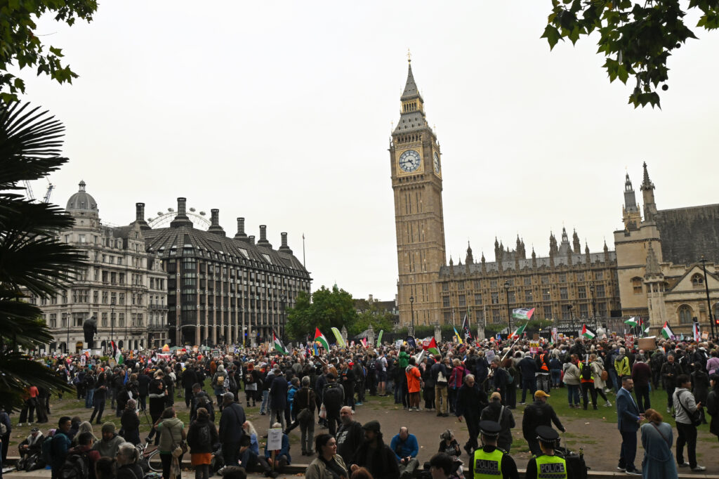 Armed with signs and shouting slogans, thousands of anti-Donald Trump protesters descended on central London on Wednesday to decry the US president’s unprecedented second state visit to the UK.London’s Metropolitan Police estimated that there were around 5,000 people at the protest, which culminated in a rally in front of parliament.With Trump receiving the red-carpet treatment at Windsor Castle, around 22 miles (35 kilometres) west of London, demonstrators marched in the heart of the British capital to display their disdain on the first full day of the trip.”We’re protesting, I suppose, about everything about Donald Trump. You don’t know what placard to carry, really, there’s so many things” to dislike, former teacher Dave Lockett, 67, told AFP.”He’s sowing destruction and disorder throughout the whole Earth… If Trump’s ideas get into this society, then what we’re talking about is fascism in Britain,” he added.Left-wing lawmakers, including new Green Party leader Zack Polanski, were among those to address the crowds in Parliament Square at the rally hosted by well-known comedian Nish Kumar.”We are gathered here united to say this is not in our name,” Polanski said of Trump’s invitation from the ruling centre-left Labour government. “This is the moment to challenge everything Donald Trump stands for. This is the moment to reject the politics of hate and division.”- ‘Hiding’ -Protesters had first massed early afternoon near the BBC’s headquarters, holding aloft an array of banners, flags and signs, covering everything from support for the Palestinians to rejecting fascism. Amid a cacophony of drumming, some demonstrators had recreated smaller versions of the giant balloon depicting Trump wearing a nappy which was famously flown during his first state visit in 2019.Yashi Sriram, a doctor originally from India, turned out with a placard reading: “End the genocide. Stop Trump.””I just wanted to show support for the people of Palestine, really, more than anything else,” said the 32-year-old.A group called the Stop Trump Coalition organised the demo, with a broad alliance of organisations sponsoring it, including Amnesty International UK, Black Lives Matter UK, Palestine Solidarity Campaign and Greenpeace.The coalition questioned why Trump would barely be in London during the visit.”Because he knows we’re protesting against him,” the group said in a statement ahead of the march.”Instead, he’ll be hiding and having a sad little carriage ride all by himself in Windsor with a parade that no one will even see. This is because of the power of our protest.”Those at the evening rally repeatedly chanted: “Say it loud, say it clear: Donald Trump not welcome here,” as various speakers railed against him.- Trump unpopular -London’s Metropolitan Police deployed more than 1,600 officers — including 500 brought in from other forces — to ensure the event passed off without incident.A purported counter-demonstration failed to muster, and there were no reports of disorder or arrests.A lone protester, surrounded by police, displayed a sign reading: “We Love Trump,” sparking boos as anti-Trump campaigners marched past him.Trump remains deeply unpopular in Britain, with new polling Wednesday showing almost half of respondents thought it was wrong to invite him for a second state visit.Only a quarter believed it will improve UK-US relations, according to the YouGov/Sky survey.London mayor Sadiq Khan, who allowed the unflattering Trump baby blimp to fly during the American president’s first-term visits, has been a persistent critic amid a years-long feud.Khan wrote Tuesday in The Guardian: “Trump and his coterie have perhaps done the most to fan the flames of divisive, far-right politics around the world in recent years.”An estimated 150,000 people attended a weekend rally in London organised by far-right activist Tommy Robinson, with 26 police officers injured in clashes on the event’s fringes.In the article, Khan — the first Muslim mayor of a Western capital when he was first elected in 2016 — accused Trump of “scapegoating minorities, illegally deporting US citizens, deploying the military to the streets of diverse cities”.”These actions aren’t just inconsistent with western values — they’re straight out of the autocrat’s playbook,” he wrote.