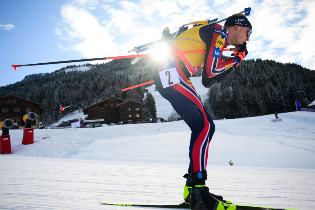 Le Norvégien Johannes Boe a remporté samedi la poursuite (12,5 km) du Grand-Bornand (France) comptant pour la Coupe du monde de biathlon devant les Français Éric Perrot et Émilien Jacquelin, et signe la 88e victoire de sa carrière.Deuxième du sprint jeudi à une seconde de son compatriote Martin Uldal, Johannes Boe n’a manqué qu’une seule de ses 20 cibles sur le second tir debout et a ainsi écrasé la concurrence.A 31 ans, Boe monte pour la 88e fois de sa carrière sur la plus haute marche du podium et se rapproche un peu plus encore du record de son compatriote Ole Einar Björndalen, qui s’était imposé à 95 reprises.Derrière Johannes Boe, Éric Perrot a réalisé un sans-faute sur le pas de tir, remontant à la 2e place après sa 7e place sur le sprint, à une trentaine de secondes du vainqueur. Émilien Jacquelin a manqué une cible à chacun de ses deux tirs debout, et a pris la 3e place, résistant au Norvégien Vebjoern Soerum (4e), qui lui a repris 20 de ses 30 secondes de retard dans le dernier tour.Il s’agit des sixième et septième podiums individuels de l’équipe de France masculine de biathlon en sept courses cet hiver, auxquels il faut ajouter deux victoires en deux relais.