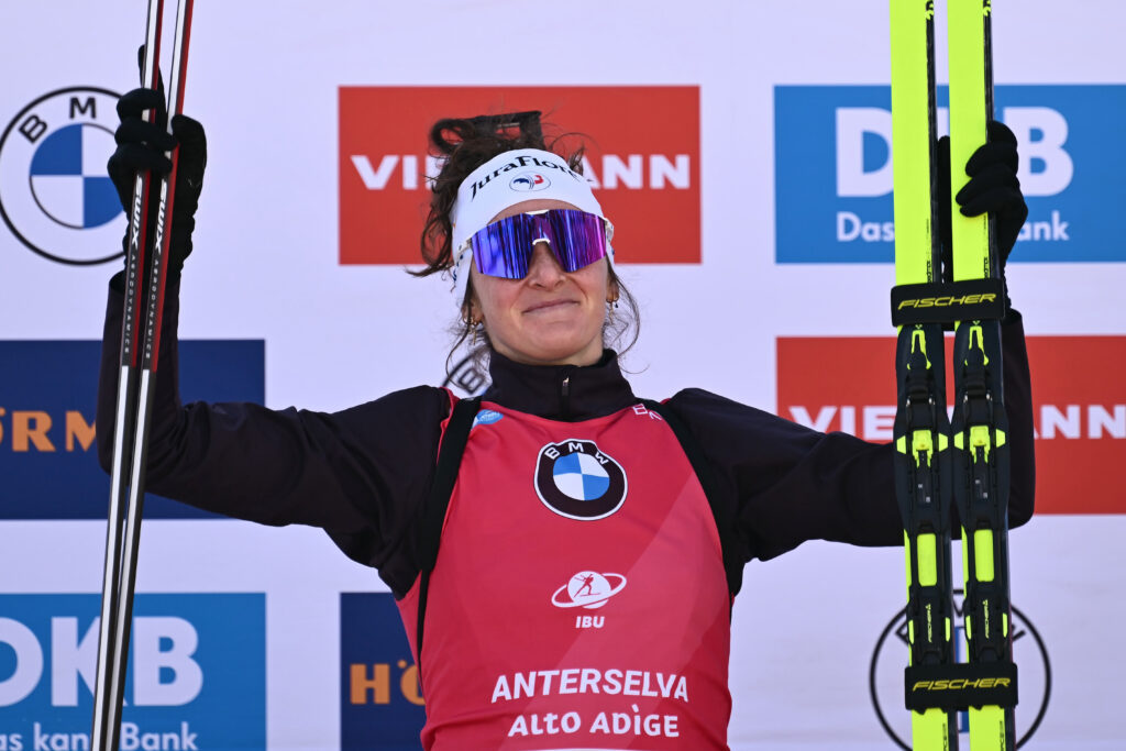 La Française Lou Jeanmonnot a remporté samedi la poursuite (10 km) d’Anterselva (Italie) comptant pour la Coupe du monde de biathlon, devant sa compatriote Julia Simon et l’Allemande Franziska Preuss, et se rapproche de la tête au classement général.Grâce à sa 6e victoire de l’hiver, Jeanmonnot revient à 92 points de la leader Franziska Preuss (787 contre 879) au classement général de la Coupe du monde, alors qu’il reste encore sept courses individuelles à la fin du mois de février et en mars, après les Championnats du monde à Lenzerheide (12-23 février).Après avoir remporté le sprint jeudi grâce à un sans-faute derrière la carabine, Jeanmonnot s’est élancée avec une grosse quinzaine de secondes d’avance sur Preuss, et a réalisé une véritable démonstration sur le site des futurs Jeux olympiques 2026, en altitude (1.600 m).Elle a outrageusement dominé la concurrence et son seul tour de pénalité concédé sur le dernier tir debout n’a même pas relancé un semblant de suspense.C’est sa quatrième victoire sur les cinq dernières courses individuelles disputées (poursuite à Oberhof, individuel à Ruhpolding, sprint et poursuite à Anterselva). Lors de la mass start de Ruhpolding, elle était à la lutte pour la victoire jusqu’au dernier tir debout, mais avait fait deux tours de pénalité qui l’avaient reléguée à la 9e place.Cinquième du sprint à une quarantaine de secondes de Jeanmonnot, Julia Simon a réalisé un sans-faute sur le pas de tir qui lui a permis de remonter à la deuxième place, à une grosse vingtaine de secondes de sa compatriote.Deux autres Françaises ont intégré le top 5 de la course, avec la 4e place de Jeanne Richard, sans faute au tir. Elle est ressortie du dernier tir debout au coude à coude avec Preuss mais qui a cédé sur les skis sur la dernière boucle face à l’Allemande.Océane Michelon a pris la 5e place, confirmant son excellent mois de janvier, après ses 4e places en sprint à Oberhof en individuel à Ruhpolding et sa 6e place de la poursuite d’Oberhof.