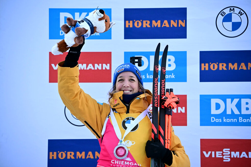 L’Allemande Franziska Preuss a fait oublier son passage à vide à Oberhof (Allemagne) en terminant deuxième de la mass start (12,5 km) dimanche devant un public acquis à sa cause, chez elle à Ruhpolding.”On veut toujours être performant à la maison. Je connais bien cette boucle, avec beaucoup de courses disputées ici. J’ai accumulé de l’expérience et je savais où c’était le mieux pour attaquer et là où il fallait s’économiser”, résume l’Allemande. La bonne semaine de la N.1 mondiale (2e à l’individuel, 1ere au relais féminin, 2e à la mass start avec 19/20) lui permet de prendre le large au général, bien aidée par les deux fautes de Lou Jeanmonnot sur le dernier tir debout (18/20).”J’ai peut-être pris trop de temps. J’ai pensé au résultat, qu’il fallait absolument que je parte avec le plein alors qu’il fallait être dans le tir. C’est fatal à chaque fois, c’est toujours les mêmes erreurs. C’est rageant”, a reconnu Lou Jeanmonnot au micro de la chaîne l’Equipe.Preuss culmine à 749 points dans la course au gros globe et augmente à 142 points son avance sur la Française. La Suédoise Elvira Oberg, vainqueure dimanche avec un sans-faute, conforte sa 3e place et revient à 36 points de Jeanmonnot. Seule consolation pour les Bleues: le premier podium de la Française Jeanne Richard, grâce à un 20/20 au tir et une bonne glisse qui lui a permis de jouer des coudes avec Preuss jusqu’à l’arrivée.”Ca y est !”, s’est réjouie la Haut-Savoyarde de 22 ans. “J’ai tout donné. Franchement, je me suis dit +c’est le moment, tu donnes tout ce que tu as. L’acide (lactique), on s’en fout, tu l’as jusque dans les oreilles+”.- Boe 3e, Fillon Maillet 6e -Une nouvelle fois très solide au tir couché, exercice dans lequel elle a raté une seule balle depuis le début de la saison, elle a résisté en fin de course au retour de l’Italienne Dorothea Wierer, 4e.Son podium lui permet d’accéder au top 5 au général, juste devant Julia Simon, qui termine 26e de la mass start avec 7 fautes au tir.”Ca a été une catastrophe, un calvaire. J’ai perdu pied. Après deux saisons aux avant-postes, c’est dur de retomber dans le fond du classement. Il y aura des jours meilleurs, ça ne pourra pas être pire”, a souligné celle qui a remporté la Coupe du monde en 2023.Plus tôt dans l’après-midi, l’Italien Tommaso Giacomel a remporté en Bavière la mass start, sa première victoire en Coupe du monde à 24 ans, grâce à un sans-faute (20/20) à la carabine, devant le Norvégien Sturla Laegreid.Le futur retraité Johannes Boe, qui a annoncé à la surpris générale qu’il tirera sa révérence en mars, a tenté de reprendre son compatriote dans la dernière partie de la course, en vain. “Après hier, je ne pouvais imaginer être aussi bon aujourd’hui. Maintenant j’ai besoin de repos pour me remettre dans la compétition”, a commenté le Norvégien. Au classement général, Laegreid a donc grappillé un peu de son retard sur son aîné, en quête d’un sixième gros globe de cristal avant de tirer sa révérence.Aucun des six Français en lice lors de cette mass start n’est parvenu à se mêler à la lutte pour le podium, la faute à un tir défaillant.Quentin Fillon Maillet, qui a commis trois erreurs au tir, a terminé à la 6e place, alors qu’il était le plus rapide sur les skis, à l’exception de Johannes Boe.