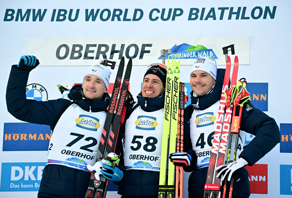 Presque cinq ans qu’on n’avait pas vu un triplé chez les hommes: les biathlètes français ont écrasé vendredi le sprint d’Oberhof, 4e étape de la Coupe du monde, dominé par Quentin Fillon Maillet devant Fabien Claude et Emilien Jacquelin.C’était le 14 mars 2020. Un certain Martin Fourcade, sept gros globes de cristal en poche, fait ses adieux à la compétition à Kontiolahti (Finlande).Il remporte ce jour-là la poursuite devant… Quentin Fillon Maillet et Emilien Jacquelin.La victoire vendredi en Allemagne a une saveur particulière pour “QFM”, qui n’avait plus gagné d’épreuve individuelle de Coupe du monde depuis mars 2022.”C’est beaucoup d’émotions. Ça a été le chemin de croix pour revenir à une victoire. Ca signifie vraiment beaucoup pour moi de revenir à la victoire. Ca faisait un moment que je n’avais pas eu de sensations si fortes sur les courses individuelles”, a réagi le Jurassien.Il a identifié ce qui péchait depuis le début de la saison: “le vrai problème, c’est le tir. A l’entraînement, je fais de bonnes choses, en compétition moins”.A Oberhof vendredi, il est parti très fort, rapide au tir et sur les skis, auteur d’un 10/10 pour sa 17e victoire individuelle (15 en Coupe du monde, 2 aux JO).”C’est mon 1er 100% (au tir) en individuel depuis le début de saison, en plus à Oberhof avec le vent, sur un format où je ne suis pas forcément le plus à l’aise”, a reconnu le Français.- 5 Français dans le top 10 -Fabien Claude (30 ans), également auteur d’un sans-faute au tir, arrive deuxième à 15 secondes du vainqueur et devant Emilien Jacquelin (29 ans) à 22 secondes avec un tour de pénalité.”Comme quoi, c’est du sport de haut niveau, il y a des hauts et des bas. Quand on accepte, on s’accroche et on essaie d’avancer, il y a toujours des beaux jours qui suivent. C’est ce que prouve ce triplé”, a réagi Emilien Jacquelin sur la chaîne L’Equipe.Cinq Français se sont fait une place dans le top 10, avec Emilien Claude, 8e à 40 secondes du vainqueur, et Eric Perrot, 10e à 48 secondes. Des écarts chronométriques qu’ils conserveront au départ de la poursuite samedi.”Un fort sentiment de fierté prédomine aujourd’hui. Ce résultat met en lumière tout l’investissement des athlètes et de l’équipe technique”, a salué l’entraîneur de l’équipe de France masculine Simon Fourcade.Le Norvégien Johannes Boe (31 ans), leader au général, est passé à côté de son épreuve avec trois erreurs au tir (7/10) et finit 13e à 58 secondes du vainqueur.La bonne course d’Emilien Jacquelin lui permet de grappiller de précieux points sur Boe dans la course au gros globe de cristal: il reste 3e au général, à 159 points du Norvégien.Dauphin au général, le Norvégien Sturla Laegreid, 27 ans, se hisse à la 6e place du sprint, à 36 secondes de QFM.Les Tricolores ont bien commencé leur saison pré-olympique: sur 24 courses disputées depuis le début de la saison chez les femmes et les hommes, ils ont terminé 23 fois sur le podium, dont 9 sur la plus haute marche.
