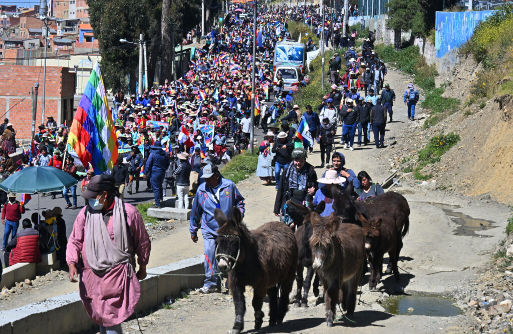 Des centaines de partisans de l’ancien président Evo Morales manifestent vendredi à La Paz pour soutenir sa candidature à l’élection présidentielle d’août, malgré son inéligibilité et un mandat d’arrêt à son encontre.Evo Morales n’était pas visible parmi les manifestants partis en caravane la veille de Parotani, dans le centre du pays, où le leader indigène est réfugié depuis l’émission en octobre d’un mandat d’arrêt à son encontre dans une affaire de traite de mineure. Après avoir entamé une marche vendredi depuis El Alto, ville voisine de La Paz, les manifestants ont rejoint la capitale administrative du pays andin avec l’intention de converger vers le Tribunal suprême électoral (TSE), placé sous étroite protection policière.”Nous sommes ici pour exiger nos droits démocratiques, nos droits politiques”, a déclaré le sénateur Leonardo Loza, proche collaborateur de M. Morales, assurant que ce dernier “était à La Paz”, sans plus de détails.Dans un récent entretien à l’AFP, celui qui entend briguer un quatrième mandat après avoir été à la tête du pays entre 2006 et 2019, avait assuré qu’il se rendrait à La Paz en mai pour présenter sa candidature.Le ministre de l’Intérieur Eduardo del Castillo a assuré dans la matinée que si M. Morales participait à la manifestation, il serait immédiatement interpellé. “Si nous le trouvons en train de marcher dans les rues, nous exécuterons le mandat d’arrêt”, a-t-il déclaré lors d’une conférence de presse.Selon le parquet, Evo Morales aurait entretenu en 2015, alors qu’il dirigeait le pays, une relation avec une adolescente de 15 ans avec le consentement des parents de cette dernière, en échange d’avantages.Le leader indigène rejette ces accusations, se disant victime d’une “persécution judiciaire” de la part du gouvernement du président Luis Arce.Il ne reconnaît pas non plus l’arrêt de Cour constitutionnelle rendu en 2023 et qui limite à deux le nombre de mandats présidentiels. Le dirigeant indigène n’est actuellement affilié à aucun parti politique, un requis pour pouvoir être candidat. Il a quitté en début d’année le parti au pouvoir qu’il avait fondé, le Mouvement vers le socialisme (MAS), après que la justice en a confié la direction à un groupe proche du président Arce.La date limite pour l’enregistrement des candidatures à la présidentielle est fixée au 19 mai. Cependant, ce n’est que le 6 juin que l’autorité électorale communiquera la liste définitive des candidats, après avoir vérifié le respect des exigences légales.