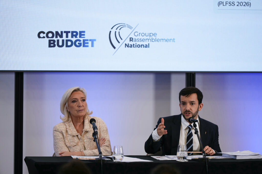 Le RN a présenté jeudi son contre-budget pour 2026, proposant de réaliser 36 milliards d’euros d’économies pour réduire le déficit, avec dans le détail 50 milliards de baisse des dépenses et 14 milliards de baisses des recettes.”Remettre l’Etat à la bonne place, arrêter les dépenses inutiles, inefficaces, voire toxiques et surtout répondre aux préoccupations des Français”, tel est l’objectif du Rassemblement national, dont le contre-budget doit servir de “ligne directrice” durant les discussions budgétaires, a résumé la présidente du groupe des députés RN, Marine Le Pen.Le projet de budget du gouvernement propose un effort global d’une trentaine de milliards d’euros pour 2026, entre hausse des prélèvements (14 milliards) et économies de dépenses (17 milliards). Les députés discuteront à partir de vendredi en séance de la partie recettes du budget de l’Etat, qu’ils ont rejetée en commission dans la nuit de mercredi à jeudi.Le contre-budget RN liste 32,4 milliards de “dépenses inefficaces”. Parmi elles, la baisse de la contribution française à l’Union européenne (8,7), la baisse des moyens dévolus aux “agences et opérateurs” de l’Etat (7,7) et la baisse de l’Aide publique au développement (2,3).Le parti pousse le curseur plus loin que l’an dernier pour les deux premiers postes, où il envisageait des baisses de 5 milliards et 3,4 milliards d’euros.Autre poste d’économies (11,9 milliards): l’immigration, avec notamment l’obligation de cinq ans de travail à temps plein pour les étrangers qui souhaitent bénéficier d’un certain nombre de prestations de solidarité, ou la transformation de l’aide médicale d’État en aide médicale d’urgence.Côté recettes, le budget prévoit 45 milliards de baisses ou de suppressions d’impôts (baisse de la TVA sur les énergies, suppression de la TVA sur 100 produits de première nécessité…) et 31 milliards de recettes nouvelles (avec notamment un impôt sur la fortune financière, une taxe sur les superdividendes, ou encore un plan de lutte contre les fraudes). Il envisage 7 milliards de nouvelles dépenses, notamment avec le dégel des prestations sociales, mais aussi le financement de la réforme des retraites du RN (1,5 milliard). Sur la suspension de la réforme des retraites prévue par le gouvernement dans le projet de budget de la Sécurité sociale, “nous sommes pour”, a rappelé Mme Le Pen. Mais il y a dans les textes budgétaires du gouvernement “des choix que l’on ne peut pas soutenir”, a-t-elle aussi ajouté, sans préciser si le Rassemblement national pourrait s’abstenir sur le projet de budget de la Sécurité sociale pour laisser passer cette mesure.