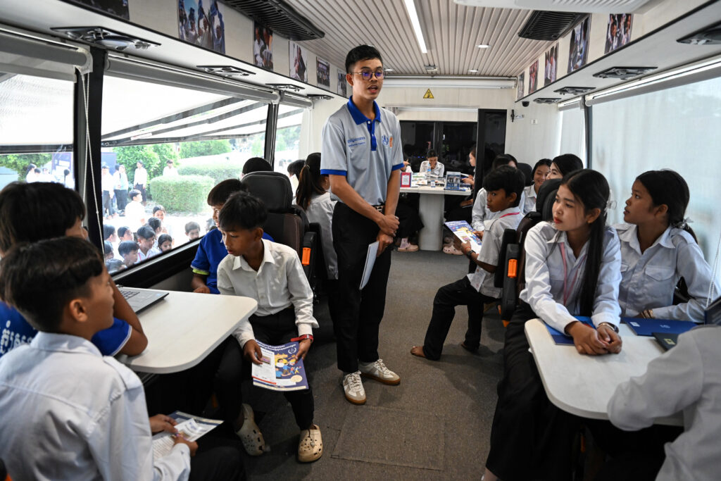 A l’ombre d’un bus transformé en musée sur roues, Mean Loeuy, 71 ans, raconte à un groupe d’enfants l’enfer qu’il a traversé dans un camp de travail des Khmers rouges.”Au début, on partageait un bol de riz entre dix personnes”, raconte cet homme de 71 ans, qui a perdu plus d’une dizaine de membres de sa famille à cette époque.”A la fin, c’était un grain de riz avec de l’eau dans la paume de la main, ajoute-t-il, décrivant le camp “comme une prison sans murs”.Depuis janvier 2024, une équipe de juristes sillonne le Cambodge pour enseigner aux écoliers les leçons des procès des dignitaires du régime génocidaire, et partager les preuves récoltées durant les 20 années de procédures — avec l’appui de survivants, dont le témoignage continue de captiver les plus jeunes.Ce programme est le dernier né des Chambres extraordinaires au sein des tribunaux cambodgiens (CETC): la cour parrainée par les Nations unies a rendu son dernier verdict en septembre 2022, mais sa mission n’est pas terminée pour autant.Au Cambodge, où deux tiers des habitants a moins de 30 ans, une majorité de la population a grandi sans avoir vécu les horreurs sous Pol Pot entre 1975 et 1979, ni les 20 années de conflit civil qui ont suivi.Jeudi marque le 50e anniversaire de la chute de Phnom Penh aux mains des Khmers rouges.Les jeunes n’ont généralement qu’une vague idée de la période la plus sombre de l’histoire de leur pays, hantée par le massacre d’environ deux millions de personnes, mortes de faim, de maladie, d’épuisement au travail, ou assassinées.- 60.000 enfants -Des groupes d’enfants se pressent dans l’autocar climatisé, spécialement aménagé pour une leçon d’histoire interactive, avec BD, tablettes et autres supports pédagogiques.Par une chaude journée de fin mars, ce musée mobile a déployé son barnum dans la cour d’un lycée de Phnom Srok (nord-ouest) — à une dizaine de kilomètres du lac de Trapeang Thma, considéré comme l’un des camps de travail les plus meurtriers des Khmers rouges, où les victimes se comptent en milliers.Dans un temple de la ville, les crânes des victimes des Khmers rouges sont alignés sur des étagères.Mouy Chheng, 14 ans, confie avoir du mal à croire la “brutalité” du régime ultra-maoïste. “Mes parents m’en ont un peu parlé”, explique-t-elle. “Aujourd’hui, je comprends bien mieux.”L’opération a touché plus de 60.000 enfants et adolescents dans 92 établissements en 2024, et vise 100 écoles pour cette année.Dans une salle de classe, Ven Pov fait circuler un micro parmi quelque 150 lycéens.”Pourquoi Pol Pot n’a-t-il pas été jugé ?”, “Pourquoi n’a-t-on pas appliqué la peine de mort ?”, “Comment est-il possible que la famine ait tué à ce point ?”, lancent-ils à tour de rôle.L’ancien avocat des parties civiles essaye de dissiper leurs doutes, bien qu’il assure ne pas avoir la réponse à tout: lui-même se demande toujours pourquoi les Khmers rouges ont commis de telles atrocités.”Nous devons faire plus de recherches”, explique-t-il.- “Héritage” -Dans un nouveau rôle après la fin du procès, les CETC conservent dans la capitale Phnom Penh des centaines de milliers de documents ouverts aux chercheurs et autres curieux.”La justice et la réconciliation vont main dans la main”, insiste Ven Pov, 56 ans. L’ancien Premier ministre Hun Sen a mis l’accent sur la paix et la cohésion sociale, mais des chercheurs et critiques regrettent l’instrumentalisation de la politique mémorielle à son profit, et sa réticence à poursuivre plus de cadres khmers rouges.Les CETC n’a condamné que trois dignitaires. D’anciens chefs du mouvement ultra-maoïste vivent toujours en liberté, sans crainte de poursuites.”La justice transitionnelle ne concerne pas seulement ceux qui ont commis les crimes, c’est aussi une question d’héritage symbolique pour la société”, explique Timothy Williams, professeur à l’université de la Bundeswehr à Munich.”Le bus pédagogique aurait pu démarrer il y a quinze ans”, poursuit-il, mais “c’est important à une époque qui a vu le renforcement du pouvoir autoritaire. Les leçons du passé sont déterminantes ici.”