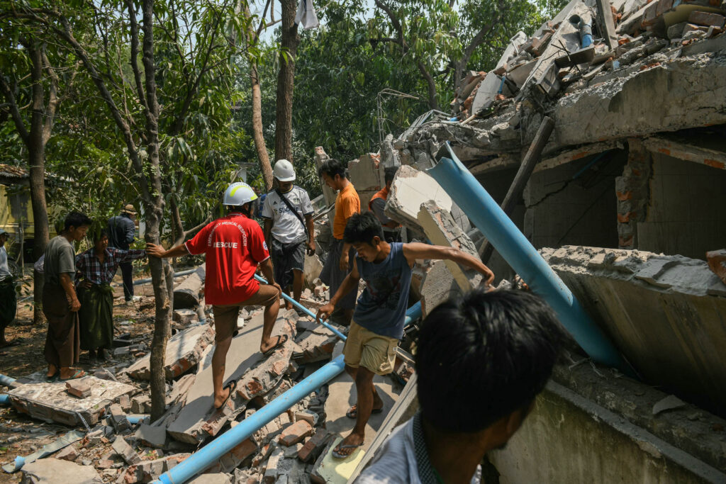 Experts say that the devastating earthquake in Myanmar on Friday was likely the strongest to hit the country in decades, with disaster modelling suggesting thousands could be dead.Automatic assessments from the United States Geological Survey (USGS) said the shallow 7.7-magnitude quake northwest of the central Myanmar city of Sagaing triggered a red alert for shaking-related fatalities and economic losses.”High casualties and extensive damage are probable and the disaster is likely widespread,” it said, locating the epicentre near the central Myanmar city of Mandalay, home to more than a million people.Myanmar’s ruling junta said on Saturday morning that the number killed had passed 1,000, with more than 2,000 injured.However, the USGS analysis said there was a 35 percent chance that possible fatalities could be in the range of 10,000-100,000 people.The USGS offered a similar likelihood that the financial damage could total tens of thousands of millions of dollars, warning that it might exceed the GDP of Myanmar.Weak infrastructure will complicate relief efforts in the isolated, military-ruled state, where rescue services and the healthcare system have already been ravaged by four years of civil war sparked by a military coup in 2021.- Dangerous fault -Bill McGuire, emeritus professor of geophysical and climate hazards at University College London (UCL), said it was “probably the biggest earthquake on the Myanmar mainland in three-quarters of a century”.A 6.7-magnitude aftershock struck minutes after the first and McGuire warned that “more can be expected”.Rebecca Bell, a tectonics expert at Imperial College London (ICL), suggested it was a side-to-side “strike-slip” of the Sagaing Fault.This is where the Indian tectonic plate, to the west, meets the Sunda plate that forms much of Southeast Asia — a fault similar in scale and movement to the San Andreas Fault in California.”The Sagaing fault is very long, 1,200 kilometres (745 miles), and very straight,” Bell said. “The straight nature means earthquakes can rupture over large areas — and the larger the area of the fault that slips, the larger the earthquake.”Earthquakes in such cases can be “particularly destructive”, Bell added, explaining that since the quake takes place at a shallow depth, its seismic energy has dissipated little by the time it reaches populated areas above.That causes “a lot of shaking at the surface”, Bell said.- Building boom -Myanmar has been hit by powerful quakes in the past.There have been more than 14 earthquakes with a magnitude of 6 or above in the past century, including a magnitude 6.8 earthquake near Mandalay in 1956, said Brian Baptie, a seismologist with the British Geological Survey.Ian Watkinson, from the department of earth sciences at Royal Holloway University of London, said what had changed in recent decades was the “boom in high-rise buildings constructed from reinforced concrete”.Myanmar has been riven by years of conflict and there is a low level of building design enforcement. “Critically, during all previous magnitude 7 or larger earthquakes along the Sagaing Fault, Myanmar was relatively undeveloped, with mostly low-rise timber-framed buildings and brick-built religious monuments,” Watkinson said. “Today’s earthquake is the first test of modern Myanmar’s infrastructure against a large, shallow-focus earthquake close to its major cities.”Baptie said that at least 2.8 million people in Myanmar were in hard-hit areas where most lived in buildings “constructed from timber and unreinforced brick masonry” that are vulnerable to earthquake shaking.”The usual mantra is that ‘earthquakes don’t kill people; collapsing infrastructure does’,” said Ilan Kelman, an expert in disaster reduction at UCL.”Governments are responsible for planning regulations and building codes. This disaster exposes what governments of Burma/Myanmar failed to do long before the earthquake, which would have saved lives during the shaking.”- Skyscraper checks -Strong tremors also rocked neighbouring Thailand, where a 30-storey skyscraper under construction was reduced to a pile of dusty concrete, trapping workers in the debris.Christian Malaga-Chuquitaype, from ICL’s civil and environmental engineering department, said the nature of the ground in Bangkok contributed to the impact on the city, despite being some 1,000 kilometres (620 miles) from the epicentre in Myanmar. “Even though Bangkok is far from active faults, its soft soil amplifies the shaking,” he said. “This affects especially tall buildings during distant earthquakes.” Malaga-Chuquitaype said the construction techniques in Bangkok favouring “flat slabs” — where floors are held only by columns without using strengthening beams, like a table supported only by legs — were a “problematic design”.He said that initial video analysis of the collapsed tower block in Bangkok suggested this type of construction technique had been used.”It performs poorly during earthquakes, often failing in a brittle and sudden (almost explosive) manner,” he said.Roberto Gentile, a catastrophe risk modelling expert from UCL, said the “dramatic collapse” of the Bangkok tower block meant that “other tall buildings in the city may require a thorough assessment”.Bangkok city authorities said they will deploy more than 100 engineers to inspect buildings for safety after receiving more than 2,000 reports of damage.