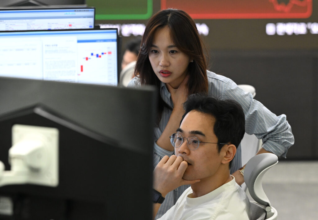 Stock markets dived Friday following weak US jobs data that raised doubts about the world’s biggest economy as President Donald Trump moves forward with additional tariffs.Major US indices finished down 1.2 percent or more after spending the entire day in the red. Major indices in Asia and Europe also fell, with Paris and Frankfurt losing nearly three percent.The dollar fell sharply against other key currencies while oil prices plunged on fears that a weakening US economy would sap demand.The Labor Department said the US economy added just 73,000 jobs in July, while the unemployment rate rose to 4.2 percent from 4.1 percent. The department also cut the job gains from June and May by nearly 260,000 jobs.”Investors are getting a bit worried that this economy is softening more rapidly than we earlier thought,” said Sam Stovall of CFRA Research.The report comes at a moment when investors had been questioning whether the market was overvalued following a series of records in recent weeks.”There’s a lot of excuses to do some selling. The primary one today is the payrolls data,” said Briefing.com analyst Patrick O’Hare.Following the jobs data, yields on US Treasury bonds fell sharply as markets price in a weaker US growth outlook and expected cuts in Federal Reserve interest rates. “The market thinks the Fed needs to cut rates and will cut rates in September because of the data,” said O’Hare, who also pointed to “disappointing price action” in the market following generally strong earnings from large tech companies. The jobs data came as Trump’s long-telegraphed August 1 tariff deadline arrived.Trump announced late Thursday that dozens of economies, including the European Union, will face new tariff rates of between 10 and 41 percent.However, implementation will be on August 7 rather than Friday as previously announced, the White House said. This gives governments a window to rush to strike bilateral deals with Washington setting more favorable conditions.”The US payrolls data has eclipsed news about the latest tariff rates applied to the world’s economies by Donald Trump, and is now dominating markets,” said Kathleen Brooks, research director at XTB trading group.Some trading partners have reached deals with the United States — including Britain, the European Union, Japan and South Korea. China remains in talks with Washington to extend a fragile truce in place since May that is due to expire on August 12.- Key figures at around 2045 GMT -New York – Dow: DOWN 1.2 percent at 43,588.58 (close)New York – S&P 500: DOWN 1.6 percent at 6,238.01 (close)New York – Nasdaq: DOWN 2.2 percent at 20,650.13 (close)London – FTSE 100: DOWN 0.7 percent at 9,068.58 (close) Paris – CAC 40: DOWN 2.9 percent at 7,546.16 (close)Frankfurt – DAX: DOWN 2.7 percent at 23,425.97 (close)Tokyo – Nikkei 225: DOWN 0.7 percent at 40,799.60 (close)Hong Kong – Hang Seng Index: DOWN 1.1 percent at 24,507.81 (close)Shanghai – Composite: DOWN 0.4 percent at 3,559.95 (close)Euro/dollar: UP at $1.1586 from $1.1415 on ThursdayPound/dollar: UP at $1.3276 from $1.3207Dollar/yen: DOWN at 147.427 yen from 150.75 yenEuro/pound: UP at 87.25pence from 86.42 penceWest Texas Intermediate: DOWN 2.8 percent at $67.33 per barrelBrent North Sea Crude: DOWN 2.8 percent at $69.67 per barrel
