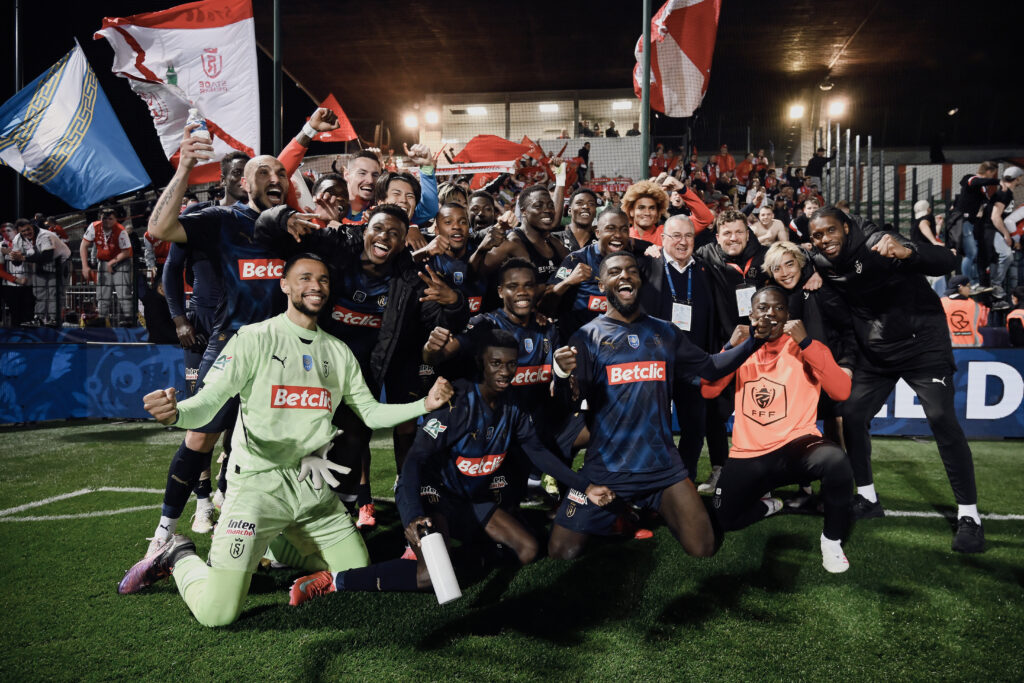 Cannes, équipe de National 2, est finalement tombée (2-1), mercredi soir au Stade Pierre-de-Courbertin, après avoir offert jusqu’au bout une magnifique opposition, en demi-finale de Coupe, contre Reims, qui affrontera Paris Saint-Germain le 24 mai au Stade de France.Une qualification cannoise aurait donné droit à l’exploit le plus grand dans la compétition depuis 25 ans, lorsque Calais, équipe de 4e division comme les Azuréens, avait disputé et perdu la finale au Stade de France contre Nantes (2-1) en 2000.Cannes, dont c’était le 10e match dans la compétition cette saison, s’est offert trois équipes de Ligue 2, Grenoble (3-2, en 32e), Lorient (2-1, en 16e) et Guingamp (3-1, en quart). Mais, même dans la souffrance, Reims, qui n’avait pas gagné un match en 2025 jusqu’à samedi dernier et sa victoire surprise contre Marseille en championnat (3-1), a été à la hauteur de son rang de formation de l’élite. Après avoir notamment sorti Monaco et Angers aux tirs au but, le capitaine Yehvann Diouf et ses partenaires tenteront de créer l’exploit face au PSG, grand favori. Mais, avant, ils devront aller chercher leur maintien en Ligue 1.L’équipe de Damien Ott, pour sa part, s’est inclinée avec les honneurs, après avoir systématiquement combattu lorsque son adversaire a pris l’avantage à deux reprises. Même dans les arrêts de jeu, Dassiemou Mai a eu l’occasion d’égaliser. Mais au sortir de son crochet, il n’a pas cadré (90e+1). Ce sont pourtant bien ses partenaires, fidèles à leurs habitudes, qui ont frappé les premiers par l’intermédiaire de Chafik Abbas (2e). Mais il n’a pas cadré sa tentative. Jouant sans crainte et les yeux dans les yeux face aux Rémois, les hommes de Damien Ott, poussés par un stade plein à craquer et plus de 8.000 spectateurs enthousiastes, ont continué à attaquer. -Teuma reclassé et buteur-Mais rapidement, Reims a réagi. D’abord, Junya Ito a obligé le jeune gardien azuréen Fabio Vanni a une belle parade (5e). Puis, sur son côté gauche, Mamadou Diakhon, 19 ans, international français U20, a commencé à faire des siennes. Il a débordé Jonas Smith en vitesse, avant de servir idéalement le Nigérian Ibrahim Hafiz Umar, 19 ans comme son compère. Après avoir inscrit neuf buts en neuf rencontres avec l’équipe réserve de Reims en National 3, le Nigérian a participé à quatre rencontres dans l’élite sous la direction de Samba Diawara. Titularisé contre Brest, il a fêté, contre Cannes, sa deuxième titularisation avec l’équipe professionnelle par un but d’avant-centre sans contrôle du gauche, essentiel, dans l’optique de la qualification (0-1, 14e).Cannes n’a alors pourtant rien perdu de sa volonté d’aller marquer. Abbas, toujours lui, a attaqué fort. Sans jamais cependant parvenir à déstabiliser Yehvann Diouf, le gardien champenois. Avant la pause, ce sont même les Rémois qui auraient pu doubler la mise. Mais Valentin Atangana n’a pas cadré (44e).La pause n’a rien changé. Cannes a multiplié les corners. Sur l’un d’eux, le capitaine Cheikh Ndoye a gagné son duel et a égalisé logiquement (1-1, 52e).Diawara a alors décidé de relancer Teddy Teuma, l’ex-capitaine déclassé. Servi par Ibrahim, auteur d’un joli débordement, l’international maltais, laissé seul par Ndoye, a redonné l’avantage aux siens (1-2, 58e). Cette fois, les Champenois n’ont plus rien lâché. Et ce sont bien eux qui seront au Stade de France. Clap de fin pour le rêve cannois.