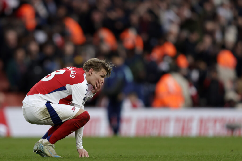 Arsenal a laissé passer l’occasion, peut-être l’une des dernières, de revenir dans la course au titre en s’inclinant à domicile face à West Ham (1-0) samedi, à la veille du choc de la 26e journée entre City et Liverpool.Les Reds peuvent porter leur avance à 11 points (avec un match en plus) s’ils s’imposent dimanche (17h30) à Manchester.Les Gunners ne sont jamais parvenus à bousculer leurs voisins dans un de leurs matches les plus ternes de la saison. Pour la troisième fois d’affilée, c’est la deuxième place qui se profile pour le club londonien, dont le dernier titre remonte à 2004.Les hommes de Mikel Arteta ont fini à dix après l’expulsion de Myles Lewis-Skelly (73e), mais ils n’avaient montré aucune supériorité ni avant le but de Jarrod Bowen (44e) ni après. Les Hammers n’avaient pourtant pris qu’un point lors des quatre derniers matches et avaient encaissé onze buts lors de leurs deux dernières confrontation avec Arsenal.L’entraîneur espagnol était privé de quatre attaquants (Gabriel Martinelli, Bukayio Saka, Kai Havertz et Gabriel Jesus), ce qui l’a amené à titulariser son compatriote Mikel Merino au poste de faux neuf. Le milieu de terrain avait marqué les deux buts de la victoire après être entré en fin de match lors du dernier déplacement à Leicester (2-0) mais a semblé perdu cette fois. L’animation offensive a été proche du néant, avec seulement quatre petites occasions.- United surnage à Everton -Manchester United a arraché le match nul à Everton (2-2), en étant inférieur dans tous les compartiments pendant l’essentiel de la rencontre, et reste englué à la quinzième place.Mené 2-0 dès la demi-heure de jeu après deux buts de Beto (19e) et d’Abdoulaye Doucouré (33e), United est resté presque sans réaction jusqu’à un magnifique coup franc de Bruno Fernandes à la 72e minute. L’égalisation est venue huit minutes plus tard par Manuel Ugarte. Fernandes était jusqu’alors passé complètement à côté de son match, comme les deux autres attaquants Joshua Zirkzee et Rasmus Hojlund. Seule l’entrée en jeu d’Alejandro Garnacho, dans la dernière demi-heure, a apporté de la percussion, à une équipe toujours aussi fébrile et désorganisée.Les Red Devils ont failli encaisser un troisième but dans le temps additionnel sur une situation brûlante, puis lorsqu’un pénalty a été annulé après une longue vérification de la VAR.L’entraîneur Ruben Amorim n’a pas caché son inquiétude, au micro de TNT Sports : “Le pire, c’était de perdre des ballons sans faire de pressing. On doit travailler au jour le jour, pour survivre à cette saison et penser à la suite.”Dans la lutte pour la qualification pour la Ligue des champions, l’outsider Bournemouth a trébuché devant son public sur Wolverhampton, vainqueur 1 à 0, et reste en cinquième position, avec un point de retard sur Manchester City.Tottenham (12e) a remporté sa troisième victoire de suite à Ipswich (4-1).