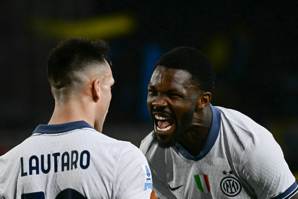 L’Inter Milan reste sur les talons de Naples: le champion d’Italie en titre a répondu au leader, vainqueur de la Juventus Turin samedi (2-1) avec une démonstration (4-0) sur le terrain du mal classé Lecce dimanche lors de la 22ème journée.A trois jours de la réception de Monaco en Ligue des champions qui peut lui permettre de décrocher sa qualification directe pour les 8ème de finale, l’Inter n’a eu besoin que de six minutes pour prendre l’avantage.Sur un ballon mal dégagé par Lecce, Marcus Thuram a mystifié deux défenseurs avec une série de dribbles pour servir idéalement Davide Frattesi.Après deux buts refusés, Lautaro Martinez a fini par doubler la mise en profitant d’une nouvelle erreur défensive de Lecce d’une frappe dans la lucarne (39) pour son sixième but en huit matches.A l’heure de jeu,les Nerazzurri ont définitivement assommé Lecce (17ème avec un point d’avance sur le premier relégable) avec deux buts en quatre minutes, par Denzel Dumfries (57) et un penalty de Mehdi Taremi (61).Grâce à cette 15ème victoire de sa saison, sa huitième de suite en déplacement en ayant concédé seulement deux buts, l’Inter (2e, 50 pts) est revenu à trois points de Naples (53 pts), mais a toujours un match de moins.Le titre 2025 pourrait se jouer le 2 mars lorsque le Napoli recevra l’Inter à l’occasion de la 27ème journée.- Victoire miraculeuse du Milan -“Depuis cinq mois, on joue un match tous les trois jours, cette équipe a de la ressource, elle l’a montré ce soir”, s’est réjoui Simone Inzaghi qui a signé sa 200ème victoire en 332 matches, un record de précocité pour un entraîneur de Serie A.Le week-end prochain, l’Inter retrouve son grand rival, l’AC Milan qui l’avait battu (2-1) durant la phase aller avant de récidiver en finale de la Supercoupe d’Italie (3-2) et qui a arraché dimanche une victoire miraculeuse contre le promu Parme (3-2) avec deux buts dans le temps additionnel.Mené 2 à 1 depuis la 80ème minute, le Milan, laborieux, a renversé Parme devant un stade de San Siro incrédule, avec des buts de Tijjani Reijnders (90+2) et de Samuel Chukwueze (90+5).L’équipe de Sergio Conceiçao qui restait sur une nette défaite en championnat face à la Juventus Turin (2-0), est passée grâce à ce succès de la 9ème à la 6ème place (34 pts).Si elle a perdu tout espoir d’être championne d’Italie, avec ses 19 points de retard sur le leader Naples, elle s’est rapproché de la Juve (5ème, 37 pts).Les Rossoneri accusent cinq points de retard sur la Lazio qui occupe la 4ème place, la dernière –pour l’instant– qualificative pour la C1, mais qui a laissé passer de l’occasion d’accroitre son avance en s’inclinant dans la soirée à domicile face à la Fiorentina (2-1), dont la dernière victoire remontait au 8 décembre.Signe de la grande nervosité régnant au sein du club lombard, Conceiçao a eu une altercation, au coup de sifflet final, sur le terrain et devant les caméras de télévision, avec Davide Calabria.”Quand vos enfants se comportent mal, il faut agir”, a simplement réagi Conceiçao qui a remplacé à la pause Rafael Leao et Theo Hernandez.