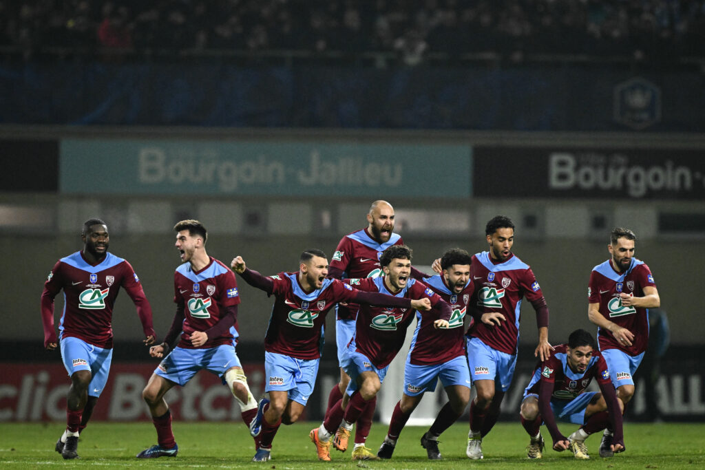 Un camouflet : Lyon a été éliminé mercredi de la coupe de France dès les 8e de finale, aux tirs au but par l’un de ses clubs partenaires, Bourgoin-Jallieu, équipe du haut de tableau de National 3 (5e div.) où les joueurs sont semi-professionnels 2-2 (4-2 t.a.b.).L’OL menait pourtant 2-1 à vingt minutes de la fin du temps réglementaire.Cette séance de tirs au but a été un calvaire pour Alexandre Lacazette et Corentin Tolisso, deux figures majeures de l’Olympique lyonnais où ils ont été formés, qui ont manqué les deux premières tentatives de leur formation arrêtées par le gardien Ronan Jay. De son côté, le gardien Lucas Perri n’a pu en repousser qu’une seule.Sous une température glaciale et sur un terrain bosselé, l’OL a de nouveau livré une trop pauvre performance dans la lignée de celles affichées depuis le début de l’année 2025. Les Lyonnais ont gagné contre le cours du jeu face à Montpellier (1-0) avant de perdre logiquement à Brest (2-1).”Il y a un sentiment de honte sur ce match au cours duquel nous avons manqué de tout. Bourgoin a livré son match. Nous n’avons pas su répondre. Il va falloir vite y remédier car cela fait un moment que l’on est sur ce type de matches-là, depuis le début de l’année”, a reconnu le directeur sportif, Mathieu Louis-Jean évoquant “une faute professionnelle”. – Ni fierté, ni honneur selon Sage -“Nous n’avons fait preuve ni de fierté, ni d’honneur. Il va falloir assumer la honte face à nos proches, aux gens qui aiment le club, nos dirigeants. C’est presque une tragédie”, a commenté de son côté, l’entraîneur de Lyon, Pierre Sage. Face aux Berjalliens, les Lyonnais ont vécu une première période difficile au cours de laquelle les Rhodaniens ont été menés à la marque sur un but de Mehdi Moujetzky qui a trompé Lucas Perri d’un bon tir croisé (21).Cet avantage était mérité car les Isérois ont eu les meilleures occasions. Perri a sauvé son équipe devant Pierre Kohser (12) et Celal Bozkurt (16) lequel s’est aussi monté très menaçant (29).Jusqu’alors en mode gestionnaire, Nemanja Matic, qui a fourni trop peu d’efforts dans l’entrejeu, a égalisé juste avant la mi-temps pour l’OL en reprenant victorieusement un centre délivré de l’aile droite par Saïd Benrahma (45).En seconde période, Georges Mikautadze, servi par Rayan Cherki, a donné l’avantage aux Lyonnais d’un tir croisé (64) après que Imbert a manqué une belle occasion (62). Ce but de l’international géorgien semblait devoir permettre à Lyon de se qualifier.- Doublé pour Moujetzky -Mais Moujetzky a réussi à remettre Bourgoin dans le coup en inscrivant son deuxième but de la soirée en profitant d’une mauvaise passe en retrait de Warmed Omari pour ajuster Perri (69).Par la suite, l’OL a manqué plusieurs opportunités de reprendre l’avantage, notamment par Malick Fofana qui a échoué devant la sortie du gardien Ronan Jay (73) avant que Cherki ne manque le cadre sur un lob (73). Fofana a lui aussi raté la cage à la réception d’un centre de Benrahma (75).L’Olympique lyonnais est la première équipe de Ligue 1 à se faire éliminer par une équipe de 5e division depuis Bordeaux face à l’Ile Rousse en 2014.Dès le coup de sifflet final, les supporters berjalliens ont envahi le terrain de manière festive mais des échauffourées ont éclaté avec des ultras lyonnais. Selon la préfecture de l’Isère, il n’y a pas eu d’interpellations.