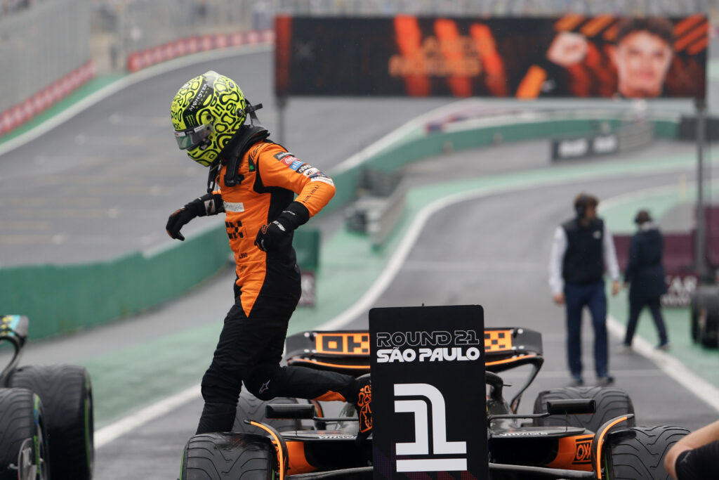 Max Verstappen, leader du championnat du monde de Formule 1, a pris une sérieuse option pour le titre en remportant le Grand Prix du Brésil dimanche, devant les Français de chez Alpine Esteban Ocon et Pierre Gasly, tandis que Lando Norris (McLaren), deuxième du classement général, a terminé sixième à l’issue d’une course folle.Retour presque …
