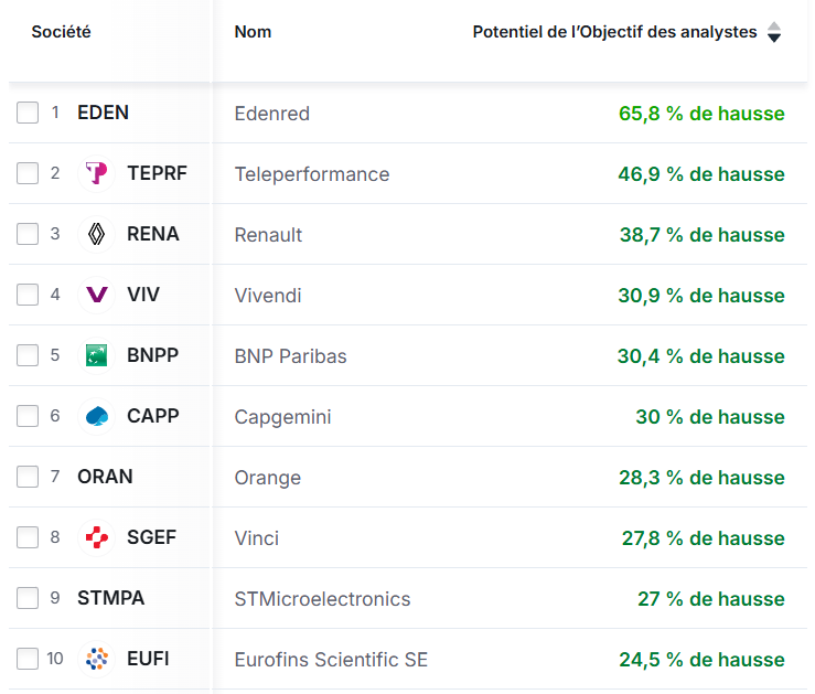 Voici les 10 meilleures actions du CAC 40 selon les analystes : Potentiel de +24-65%