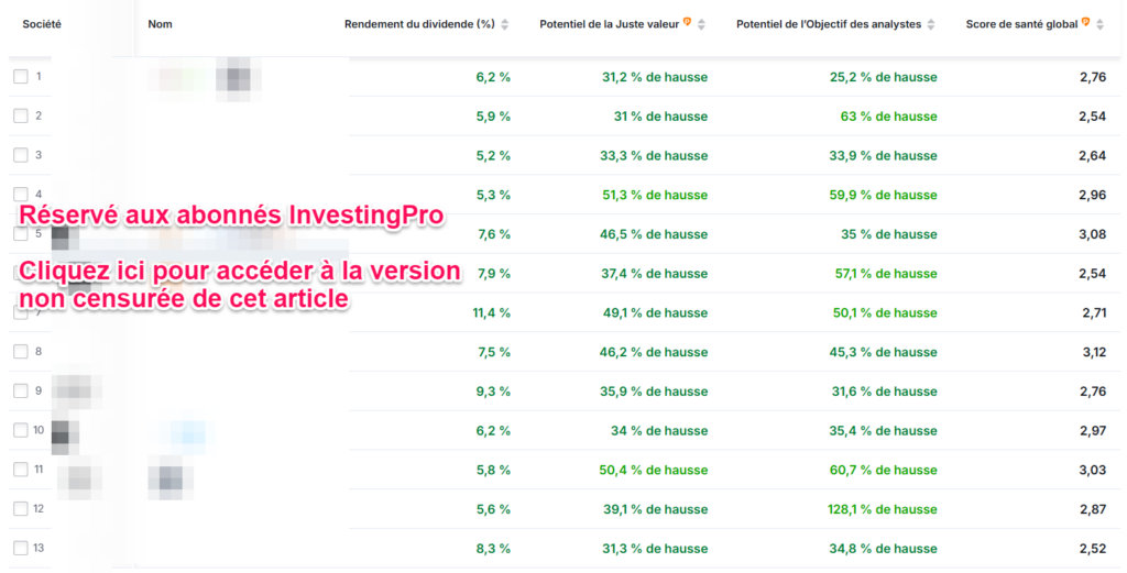 Ces 13 actions à dividendes françaises affichent jusqu’à +128% de potentiel haussier