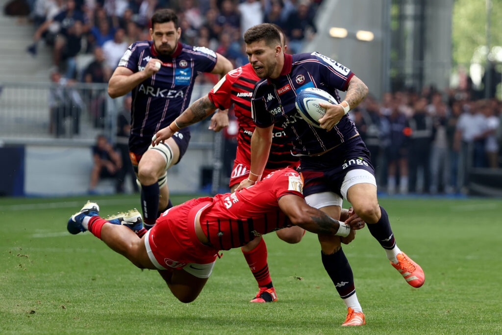 L’élève s’est offert le maître: l’Union Bordeaux-Bègles a réalisé le match parfait dimanche pour faire tomber le tenant du titre toulousain (35-18) et rejoindre la première finale de Champions Cup de son histoire.Seule ombre au tableau à trois semaines de la finale contre les Anglais de Northampton le 24 mai à Cardiff, la sortie sur blessure de Damian Penaud, touché à la cheville gauche, en larmes à l’issue de la rencontre. Mais en lavant l’humiliation subie en finale du Top 14 l’an dernier (59-3), l’UBB a fait ce qu’aucune équipe française n’était parvenu à accomplir dans l’histoire de la plus prestigieuse des compétitions européennes: elle a battu en phase finale le Stade Toulousain, sextuple lauréat de l’épreuve.Certes, les hommes d’Ugo Mola s’étaient présentés amoindris au Matmut Atlantique, amputés de plusieurs cadres. En plus d’Antoine Dupont, victime d’une rupture des ligaments croisés du genou droit en mars, ils ont perdu dans la semaine Peato Mauvaka, Blair Kinghorn et Thomas Ramos.- Jalibert au rendez-vous -Ces hommes ont cruellement manqué malgré l’appui de 15.000 supporters toulousains ayant fait le court déplacement.Mais le triomphe de l’UBB ne peut être réduit à ces absences. Face à l’expérience des Stadistes, qui vivaient leur septième demi-finale de Champions Cup consécutive, l’UBB a mis tous les ingrédients pour valider son billet pour le pays de Galles.Sous le soleil alors que la pluie avait été redoutée toute la semaine, les deux premiers du Top 14 sont entrés en collision sans le moindre round d’observation.Attendu au tournant dans son sempiternel duel avec son vis-à-vis et rival en Bleu Romain Ntamack, l’ouvreur Matthieu Jalibert a allumé la première mèche d’une percée dévastatrice, relayé par le troisième ligne Pete Samu qui est allé aplatir dans l’en-but toulousain (7-0, 4e).Toulouse est rentré dans sa partie à tâtons, mais a su mettre en route la machine pour ne pas se laisser décrocher: Dimitri Delibes a conclu une énorme séquence qui a vu ses coéquipiers balayer toute la largeur du terrain plusieurs fois (10-8, 15e).Les Rouge et Noir sont passés devant grâce à une pénalité de Juan Cruz Mallia, mais les locaux n’ont pas tardé à réagir, grâce au 29e essai en 27 matches cette saison de Louis Bielle-Biarrey (15-11, 23e). La partie est ensuite devenue plus tactique et en l’absence de Thomas Ramos, les champions en titre ont souffert face au jeu d’occupation parfaitement exécuté par Maxime Lucu et Jalibert.Le capitaine et demi de mêlée de Bordeaux-Bègles avait promis la veille d'”exploiter les faiblesses qu’ils ont eues dans la semaine et regarder ce qui peut nous faire gagner”. Un mantra appliqué à la perfection, chaque ballon de relance se transformant immédiatement en danger pour l’arrière-garde haut-garonnaise.Et si les coéquipiers d’Antoine Dupont, présent en tribune, n’avaient pas compris ce qu’ils risquaient, Louis Bielle-Biarrey s’est chargé de leur rappeler au retour des vestiaires. Le meilleur joueur du dernier Tournoi n’a mis que 19 secondes pour les punir après le coup d’envoi toulousain (25-11, 41e).Anthony Jelonch a sonné la révolte avec une entrée percutante, permettant aux siens de réduire l’écart en profitant du carton jaune reçu par le troisième ligne bordelais Marko Gazzotti (53e), sanctionné par un essai de Pierre-Louis Barassi (25-18, 55e).Mais ni ce temps fort toulousain, ni la blessure de Penaud avant l’heure de jeu, n’ont terni l’excellente partition déroulée par les hommes de Yannick Bru.Dominants dans les rucks face à une des équipes les mieux dotées du monde dans ce domaine, dans le sillage d’un Maxime Lamothe omniprésent, l’UBB a rendu impuissant le Stade Toulousain.Après les avoir dominés à deux reprises en Top 14, les Girondins ont réédité la performance dans un match couperet, au meilleur des moments.Le 24 mai, ils tenteront d’aller chercher le premier titre européen de l’histoire du club né en 2006.Toulouse, leader du Top 14, voudra panser ses plaies et réaffirmer sa suprématie sur la scène nationale.