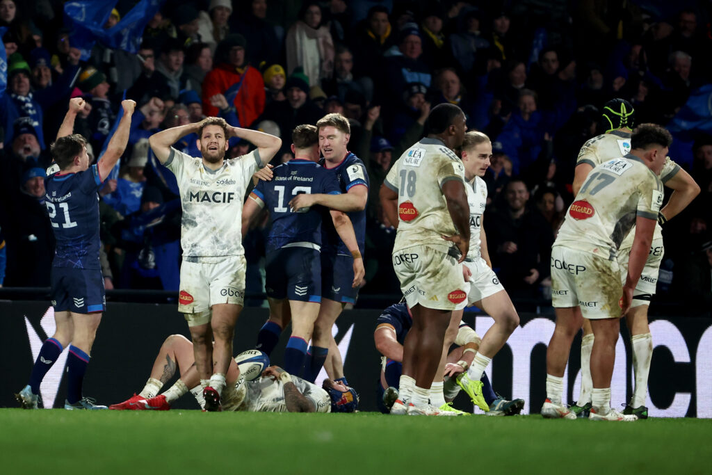 La Rochelle a perdu d’un rien (16-14) le choc de la troisième journée de la Champions Cup contre le Leinster dimanche, après s’être cassé les dents presque tout le match sur la défense irlandaise. Antoine Hastoy a eu la pénalité de la gagne à moins d’une minute de la fin, juste après la ligne médiane en face des perches, mais a trouvé le poteau. Après la mêlée qui a suivi l’action, l’ouvreur a vu son drop contré et jamais ses partenaires ne sont parvenus ensuite à faire craquer le Leinster, même après deux minutes de temps de jeu étouffantes après la sirène.Avec cette défaite, les Rochelais disent quasiment adieu à la première place du groupe, mais restent encore bien placés pour la qualification grâce à leurs deux premières victoires et à un déplacement abordable chez les Italiens de Trévise lors de la dernière journée. Dans le classique européen de ces quatre dernières saisons (6e match), les Irlandais semblent avoir repris le dessus et enchaînent une troisième victoire consécutive, dont deux à Marcel-Deflandre.Ils s’étaient imposés en phase de poules l’an passé (16-9) avant d’infliger une correction en quarts de finale à Dublin (40-13). Dans des conditions fraîches mais sous un beau ciel bleu, les Rochelais, au visage préoccupant lors des trois derniers matches de Top 14, ont mis énormément d’d’agressivité, à l’image des premières percées ravageuses du troisième ligne Paul Boudehent. – Atonio et Wardi blessés -Ils pouvaient se le permettre avec sept avants sur le banc, pour un seul arrière. L’entraîneur Irlandais Ronan O’Gara a pu injecter du sang neuf régulièrement, mais aussi de manière contrainte avec les sorties sur blessure des piliers Uini Atonio et Reda Wardi, une mauvaise nouvelle à trois semaines du début du Tournoi des Six nations. Les Rochelais ont d’abord fait le siège du camp irlandais (80% d’occupation territoriale dans les 20 premières minutes) passant même sept minutes dans les 15 derniers mètres. En vain, et l’avance des champions d’Europe 2022 et 2023 (victoires en finale contre le Leinster) n’était que de trois points (6-3) après cette intense phase de pression. A l’inverse, sur une combinaison entre Osborne et McCarthy, ce sont eux qui se sont fait transpercer à la demi-heure de jeu. En retard à la pause (10-6), les Rochelais ont un peu déjoué au retour des vestiaires, subissant deux pénalités (16-6, 55e). Mais le second souffle est venu à l’heure de jeu, avec une pénalité puis un essai de Leyds ramenant les Rochelais à un souffle à quinze minutes de la fin. Les deux équipes ont ensuite eu l’opportunité de marquer au pied, mais sans réussite. Et après une ultime passe d’armes, les Irlandais ont levé les bras.