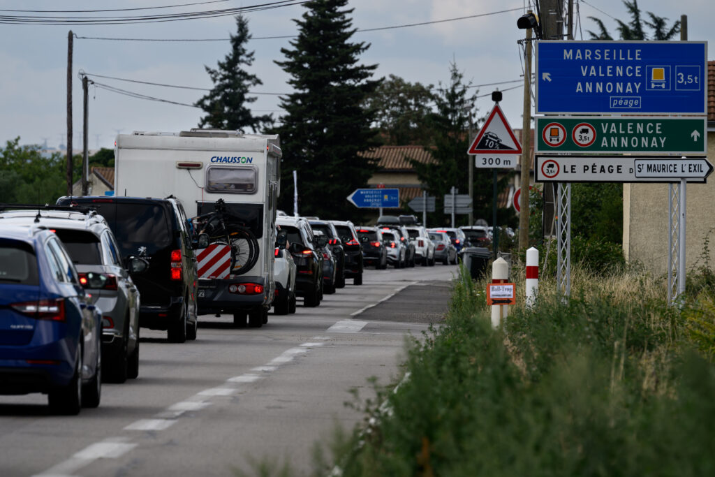 Plus de 1.000 km de bouchons cumulés ont été enregistrés, en milieu de journée samedi, avant de largement se résorber, pour ce traditionnel chassé-croisé de l’été entre juillettistes et aoûtiens.Le pic des embouteillages a été atteint à 12h05, avec un cumulé de 1.078,9 km, selon Bison futé, non loin du record de 1.086,5 km.Les congestions se sont depuis nettement amoindries : vers 17h00, elles n’étaient plus que de 520 km et elles devraient être plus ou moins résorbées d’ici à la soirée, selon Bison futé.L’agence publique d’information routière avait averti d’une circulation “extrêmement difficile” en ce samedi classé au niveau national noir dans le sens des départs et orange dans celui des retours. Il est classé rouge pour la zone Arc méditerranéen dans le sens des retours. Dans la longue file de voitures attendant d’entrer dans le tunnel du Mont-Blanc, on essaie de prendre son mal en patience: “On ne s’attendait pas à avoir deux heures de bouchon mais ça fait partie des vacances”, témoigne auprès de l’AFP Frédéric Raimbault, venu du Mans et bloqué dans les bouchons avant le tunnel pour l’Italie, où Bison Futé indiquait un temps d’attente de deux heures environ.”On sait que là où on va, on a du soleil donc c’est pas grave”, ajoute avec le même stoïcisme Sonia Zebboudj, venue de Chateauroux et en route pour l’Italie où elle célébrera son mariage. “On est parti à 1h du matin. Nuit blanche mais tout va bien”, raconte la future mariée, qui voyage avec enfants et amis.Pour ce premier weekend d’août, c’est une nouvelle fois la zone “Arc méditerranéen” qui a été la plus touchée avec un volume maximal de bouchons atteint vers 12h00 de 314 km cumulés. Les routes vers les plages de l’Atlantique étaient elles aussi largement encombrées, avec plus de 80 km d’embouteillages sur l’A10. Patientant sur une aire en Gironde, Valérie attendait “tout simplement que ça passe”. “On fait la petite pause pour le chien. On va pique-niquer tranquille”, expliquait cette entrepreneuse de 57 ans sur une aire d’autoroute à Cestas, à une vingtaine de kilomètre au sud de Bordeaux.”Parce que là, on est à l’arrêt, donc de toute façon, ça sert à rien d’être dans la voiture, on est mieux là, il y a des pins et ça commence à sentir bon les vacances”, ajoute-t-elle.Pour la zone Ile de France, le volume maximal de bouchons a été atteint vers 11h55 avec 38 km cumulés. Vers 17h00, la circulation s’était largement améliorée, les principaux points noirs restant comme à l’accoutumée en direction de la Méditerranée, avec environ 100 km de bouchons, sur l’A7, et 60 sur l’A9.- 3h05 de Lyon à Orange -L’A75, qui traverse le Massif Central, est également impactée, avec 40 km de bouchons environ.En fin d’après-midi, le temps de circulation sur l’A7 entre le sud de Lyon et Orange (Vaucluse) était de 3h05 au lieu d’1h35 en temps normal, et de 2h25 au lieu d’1h40 entre sur l’A9 entre Orange et Narbonne, selon le compte X de Vinci Autoroutes, qui gère ces axes.Les difficultés de ce chassé-croisé, qui doivent s’étaler jusqu’à lundi, avaient déjà commencé vendredi, journée classée rouge pour les départs, des Hauts-de-France à la Bretagne, en passant par la Normandie, l’Ile-de-France et la région Auvergne-Rhône-Alpes. La circulation a été dense vendredi du début de la matinée jusqu’en milieu de soirée.La journée de dimanche est classée jaune dans le sens des départs. burx-lv/hj