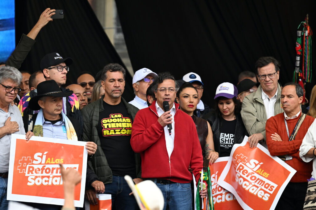 Des milliers de partisans du président de gauche de la Colombie Gustavo Petro ont répondu mardi à son appel à manifester dans tout le pays pour soutenir ses projets de réforme du travail et de la santé, barrés par le Parlement aux mains de l’opposition.A un peu plus d’un an de la fin de son mandat de quatre ans, Petro, 64 ans, en appelle à la rue pour tenir ses promesses électorales et façonner son héritage politique. L’ex-guérillero, premier président de gauche de l’histoire de la Colombie, ne peut pas se représenter en 2026 mais entend paver le chemin à son successeur non encore désigné.Dans un long discours devant ses soutiens place Bolivar à Bogota, il a argué qu’une “oligarchie” corrompue a “trahi le peuple colombien, par avidité et pour l’argent”. Estimant que “le Parlement colombien tourne le dos au peuple”, il réclame un référendum sur ses réformes du travail et de la santé. Une consultation populaire qui a besoin d’être avalisée par le Parlement.Edgar Sanchez, retraité, a dit à l’AFP manifester pour que ses enfants et petits-enfants puissent profiter “de journées de travail de huit heures, un salaire majoré pour le travail de nuit, les dimanches ou les jours fériés”.Mercredi, une commission parlementaire a recommandé le rejet de la proposition de loi sur la réforme du travail. “Nous sommes prêts à démonter une par une les choses fausses qui ont été avancées contre une réforme si nécessaire”, a déclaré à la presse le ministre du Travail, Antonio Sanguino, également présent parmi les manifestants.Le projet de réforme de la santé, visant à réduire la part du privé, avait déjà été retoqué par le Parlement.
