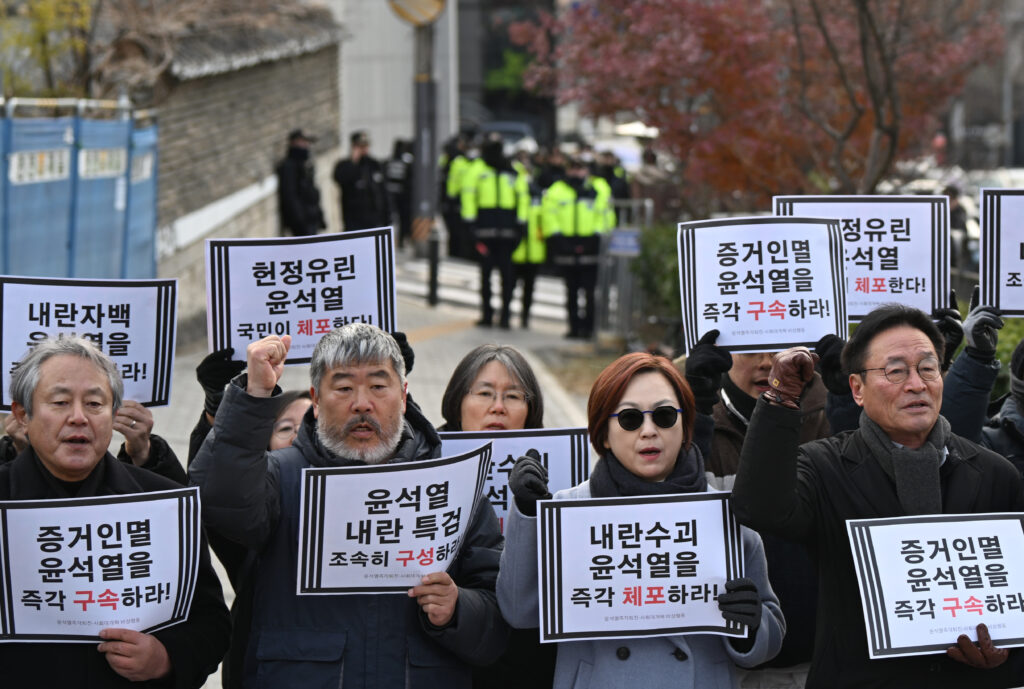 Le président sud-coréen déchu Yoon Suk Yeol ne s’est pas présenté mercredi devant l’agence anticorruption qui l’avait convoqué sur sa tentative d’instaurer la loi martiale.M. Yoon a été démis de ses fonctions par le Parlement ce week-end après avoir décrété la loi martiale le 3 décembre, plongeant le pays dans sa pire crise politique depuis des décennies. Les enquêteurs de l’agence anticorruption l’avaient convoqué dans leurs locaux de la banlieue de Séoul mercredi matin pour l’interroger sur des accusations de rébellion et d’abus de pouvoir.”Le président Yoon ne s’est pas présenté à sa convocation aujourd’hui”, a déclaré un responsable de l’agence à l’AFP. Les avocats du président déchu ont déclaré mardi qu’il n’avait pas commis de rébellion et se sont engagés à contester cette accusation devant la justice, selon l’agence de presse Yonhap.L’agence avait déjà envoyé une convocation qui n’avait pas pu être remise à la présidence.L’absence de M. Yoon mercredi “sera considérée comme un manquement à la première convocation”, a indiqué l’agence dans un communiqué.Les enquêteurs envisagent d’envoyer une deuxième convocation ou, à défaut, d’émettre un mandat d’arrêt contre le président, a indiqué le chef de l’agence anticorruption Oh Dong-woon devant le parlement mardi.Le président déchu fait l’objet d’une enquête menée par le parquet sud-coréen ainsi que par une équipe conjointe de policiers, du ministère de la Défense et d’enquêteurs anti-corruption.Le président et certains de ses proches risquent la prison à vie, voire la peine de mort, s’ils sont reconnus coupables.La Cour constitutionnelle de Corée du Sud, qui a entamé lundi une procédure contre Yoon, a été saisie par ailleurs sur sa destitution.