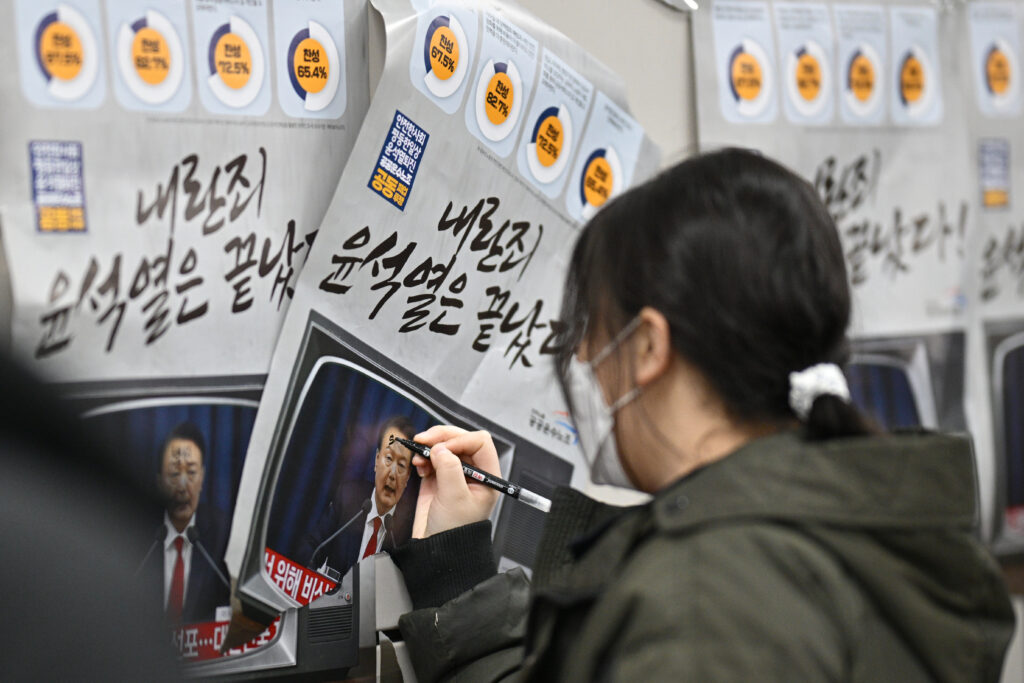 Les autorités sud-coréennes ont imposé mardi de nouvelles interdictions de quitter le territoire à des responsables de la police, a indiqué cette dernière, une semaine après l’éphémère loi martiale proclamée par le président Yoon, lui-même frappé de cette sanction la veille.Le commissaire-général de l’Agence de la police nationale Cho Ji-ho ainsi que deux autres hauts responsables ne peuvent plus quitter le pays, a déclaré l’institution à l’AFP.Yoon Suk Yeol a reçu la même interdiction lundi. Les ex-ministres de la Défense et de l’Intérieur, le commandant de l’éphémère loi martiale et le chef du contre-espionnage sont aussi obligés de rester en Corée du Sud.Le pays est en plein chaos politique depuis le coup de force raté de M. Yoon, qui a déclaré brièvement la loi martiale il y a une semaine avant d’être obligé de l’abroger à peine six heures plus tard, sous la pression du Parlement et de la rue.Des hélicoptères et des soldats avaient été déployés pour bloquer les accès du Parlement, sans toutefois réussir à empêcher des députés de voter la levée de l’état d’exception, alors que les forces spéciales tentaient de les en déloger.Yoon Suk Yeol et plusieurs de ses alliés, certains issus du même lycée que lui, sont sous le coup d’enquêtes.M. Yoon, visé pour “rébellion”, est le premier président sud-coréen en exercice à se voir interdit de quitter le territoire, selon le ministère de la Justice.- “Défoncer la porte” -L’ex-ministre de la Défense Kim Yong-hyun, en poste pendant le coup de force du dirigeant Yoon, a été arrêté dimanche, les enquêteurs ayant fait la demande d’un mandat pour qu’il puisse être maintenu en détention.Il est notamment accusé d’avoir joué un rôle “crucial lors d’une rébellion” et commis un “abus de pouvoir pour entraver l’exercice de droits”. Un tribunal de Séoul doit organiser une audience afin de décider de délivrer ou non un mandat à l’encontre de M. Kim. Il s’agirait alors de la première décision de justice en lien avec les événements du 3 au 4 décembre.”L’entière responsabilité de la situation ne repose que sur moi”, a affirmé mardi l’ancien ministre, dans un communiqué porté par ses avocats.Il s’est par ailleurs “profondément excusé” auprès des Sud-Coréens, assurant que ses subordonnés avaient “simplement suivi (ses) ordres et effectué les tâches qui leur étaient assignées”.Le chef des forces spéciales, Kwak Jong-geun, a expliqué mardi qu’il avait reçu l’ordre d’empêcher qu’un nombre suffisant de députés ne se rassemblent à l’Assemblée nationale pour y voter la levée de la loi martiale.Cette nuit-là, 190 d’entre eux, largement assez, étaient parvenus à entrer, adoptant à l’unanimité la fin de cet état d’exception.”Le président m’a appelé directement sur une ligne secrète. Il a dit qu’il semblait que le quorum (pour annuler son décret) n’était pas encore atteint et m’a ordonné de vite défoncer la porte et de traîner dehors (les députés qui étaient) à l’intérieur”, a-t-il relaté lors d’une audition parlementaire.- “Feuille de route” -Samedi soir, l’impopulaire président Yoon, 63 ans, a échappé de peu à une motion de destitution soumise au vote du Parlement. Son Parti du pouvoir au peuple (PPP) l’a sauvé en boycottant le scrutin, invalidé faute de quorum.Le PPP a ensuite expliqué qu’il avait obtenu de Yoon Suk Yeol, en échange du blocage de la motion, qu’il laisse la gouvernance au chef de sa formation ainsi qu’au Premier ministre.L’opposition a fustigé un “deuxième coup d’Etat”, après la loi martiale.Les locaux de certains députés du PPP ont été vandalisés, ont affirmé mardi des médias sud-coréens.La police du quartier de Dobong, à Séoul, a elle déclaré à l’AFP qu’une “arme” non-identifiée avait été découverte devant la résidence du député Kim Jae-sub, qui a demandé à bénéficier de mesures de protection.Des médias ont par ailleurs rapporté que le PPP allait dévoiler une “feuille de route” pour la démission de Yoon Suk Yeol, l’objectif étant d’éviter une nouvelle motion de destitution que l’opposition entend soumettre au vote samedi.Selon la presse sud-coréenne, le PPP envisage deux options: la démission de M. Yoon en février, avec une nouvelle élection présidentielle en avril, ou une démission en mars, avec un scrutin en mai.Si huit membres du parti présidentiel votent pour la motion, elle pourra être adoptée.Il reviendra ensuite à la Cour constitutionnelle de statuer sur sa validité.Lors de la première tentative de motion le 7 décembre, seuls deux députés du PPP, Ahn Cheol-soo et Kim Yea-ji, ont voté favorablement. Mais mardi, deux de plus ont annoncé leur intention de faire de même, selon des images télévisées.”Je n’ai pas voté pour le parti d’opposition. J’ai voté pour le peuple”, a déclaré à l’AFP M. Ahn lundi, disant avoir été guidé par “le sens du devoir” face à un “coup d’Etat anticonstitutionnel”.Plusieurs centaines de protestataires étaient de nouveau devant le Parlement mardi soir pour demander la “destitution” de Yoon Suk Yeol, qualifié de “criminel rebelle”, selon des images de la télévision sud-coréenne.