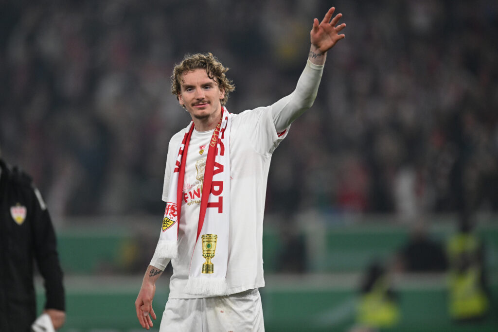 Le VfB Stuttgart, vainqueur mercredi à domicile du RB Leipzig 3-1 en demi-finale de la Coupe d’Allemagne, rejoint en finale de la Coupe d’Allemagne l’Armina Bielefeld, club de 3e division vainqueur surprise la veille du Bayer Leverkusen, tenant du titre.Devant son public, Stuttgart a rapidement ouvert le score, par l’intermédiaire de Stiller expédiant d’une sublime reprise de volée d’une vingtaine de mètres, sur un renvoi du ballon dans l’axe par un défenseur adverse, le cuir dans la lucarne du but de Vandevoordt (1-0, 5e).L’équipe locale a obtenu une grosse occasion de doubler la mise, lorsqu’à la dixième minute la reprise du bout du pied de Demirovic devant le gardien a été superbement détournée par celui-ci.Le VfB, ensuite dominé, a préservé ce but d’avance jusqu’au repos, malgré plusieurs occasions pour Leipzig dans le dernier quart d’heure de ce premier acte, signées Openda, Xavi Simmons ou Baku.En seconde période, deux minutes après avoir vu sa tête des six mètres détournée en extension par Vandevoordt, Woltemade, d’un plat du pied croisé après un une-deux dans la surface avec Demirovic, a doublé la mise pour Stuttgart (2-0, 57e).Leipzig est revenu rapidement au score grâce à Sesko, parti dans le dos de la défense adverse pour venir tromper de près Nübel, l’ancien gardien de l’AS Monaco (2-1, 62e).Mais Woltemade, encore lui, a douché les espoirs des visiteurs de recoller au score, en reprenant de près un ballon cafouillé sur corner (3-1, 73e). Malgré une ultime reprise sur la transversale de Sesko (86e), les hommes de Sebastian Hoeness ont conservé leurs deux buts d’avance jusqu’au bout. La finale opposera donc le 24 mai au stade Olympique de Berlin le VfB Stuttgart, triple vainqueur du trophée (1954, 58, 97), qui en sera l’archi-favori, au modeste Bielefeld qui a renversé mardi le Bayer Leverkusen (2-1).Méfiance cependant: le sociétaire de 3e division a successivement fait tomber depuis les seizièmes quatre clubs de l’élite: l’Union Berlin, Fribourg, le Werder Brême et le Bayer Leverkusen.