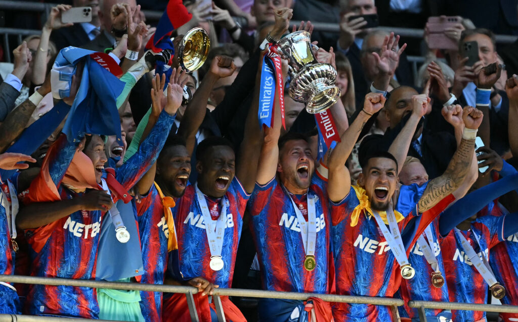 Crystal Palace, outsider majestueux, a remporté le premier trophée de son histoire, samedi en finale de la Coupe d’Angleterre face au grand Manchester City (1-0) de Pep Guardiola, désormais assuré de finir sa saison sans titre, une rareté.Un but de la pépite Eberechi Eze (16e) et un penalty arrêté par Dean Henderson (36e) ont envoyé les Eagles du sud de Londres au septième ciel et en Ligue Europa, la récompense attribuée au lauréat de la “Cup”.Les banlieusards au maillot rouge et bleu, portés par leurs brûlants supporters, ont gâché au passage la sortie du magicien Kevin De Bruyne, maître à jouer de Manchester City depuis une décennie.Les délicieuses passes entre les lignes du capitaine belge, en fin de contrat et non prolongé, n’ont pas suffi pour briser la résistance de Crystal Palace, héroïque dans la souffrance.L’entraîneur multi-titré de Manchester City, Pep Guardiola, boit lui la calice jusqu’à la lie, au bout d’une année qu’il termine sans trophée, une première depuis sa première saison en Angleterre (2016-2017).Il va devoir très vite remobiliser ses troupes, puisqu’il lui reste encore deux “finales” à disputer en Premier League pour assurer sa place dans la prochaine Ligue des champions, et dès mardi contre Bournemouth.Son vis-à-vis, Oliver Glasner, sera à jamais le premier entraîneur titré avec Crystal Palace, un club populaire du sud de la capitale, qui avait échoué par deux fois en finale de la compétition, en 1990 et 2016.Les héros de 2025 s’appellent Eze et Henderson, mais aussi Marc Guéhi le capitaine, ou encore Jean-Philippe Mateta, l’avant-centre français de 27 ans, enfin crédité d’un premier trophée, lui aussi, quelques mois après avoir échoué en finale olympique avec la France- “Une grande cohésion” -La victoire de Palace est aussi la défaite de Guardiola, entraîneur réputé pour son génie, mais parfois rattrapé par ses innovations tactiques déroutantes.Samedi, l’Espagnol avait tenté un coup en titularisant six joueurs à vocation offensive (Silva, De Bruyne, Savinho, Doku, Marmoush et Haaland) et aucun milieu défensif de métier.Ce pari, à double tranchant, s’est vite vu: Man City a fait le siège de la moitié de terrain adverse dans le premier quart d’heure, mais a affiché des trous dans lesquels Palace attendait de se jeter.Les Eagles ont piqué à la première occasion: un six-mètres joué court, des petites passes pour attirer leur proie puis un long ballon réceptionné par Mateta sur la ligne médiane. L’attaquant a lancé à droite Daniel Munoz, dont le centre en retrait a été repris par Eze (16e).”Nous avons marqué la première fois que nous étions dans leur moitié de terrain, puis nous avons défendu… Nous avions un excellent gardien de but, une excellente mentalité, une grande cohésion”, s’est réjoui Glasner.A Wembley, son ange gardien s’appelait surtout Dean Henderson, le portier aux mains fermes et aux nerfs solides.Il a donné le ton devant Erling Haaland (6e) et Josko Gvardiol (12e), repoussé un tir de Jérémy Doku (43e) et, entre temps, s’est jeté sur son côté droit pour repousser un penalty de Marmoush (36e).Son arrêt a déclenché un vacarme de tous les diables parmi les fans de Palace, formidables de bout en bout, qui avaient lancé le match sous un nuage de drapeaux, fumigènes et ballons de couleur bleu et rouge, et avec une banderole prémonitoire: “Wembley va secouer… et ça va être beau”.En seconde période, même scénario: City a attaqué et Palace résisté, à l’image des tacles de Daichi Kamada devant Silva (56e) et de Munoz devant Nico O’Reilly.Les dribbles de Doku étaient sans lendemain, la présence de Haaland insuffisante dans la surface, et la défense encore bien trop fragile. Elle a même craqué une nouvelle fois devant Munoz (59e), avant d’être sauvée par un hors-jeu d’Ismaïla Sarr détecté par la VAR.Manchester City a continué sa marche en avant mais il y avait un mur en face: Henderson s’est imposé devant les entrants Vitor Reis (82e) et Claudio Echeverri (90e+6) pour parachever son chef-d’oeuvre.”Nous avons absolument tout fait (…) mais nous n’avons pas marqué”, a résumé Guardiola en lâchant, en réponse à une question sur ses choix tactiques: “le plan de jeu n’a pas marché puisque nous n’avons pas gagné”.