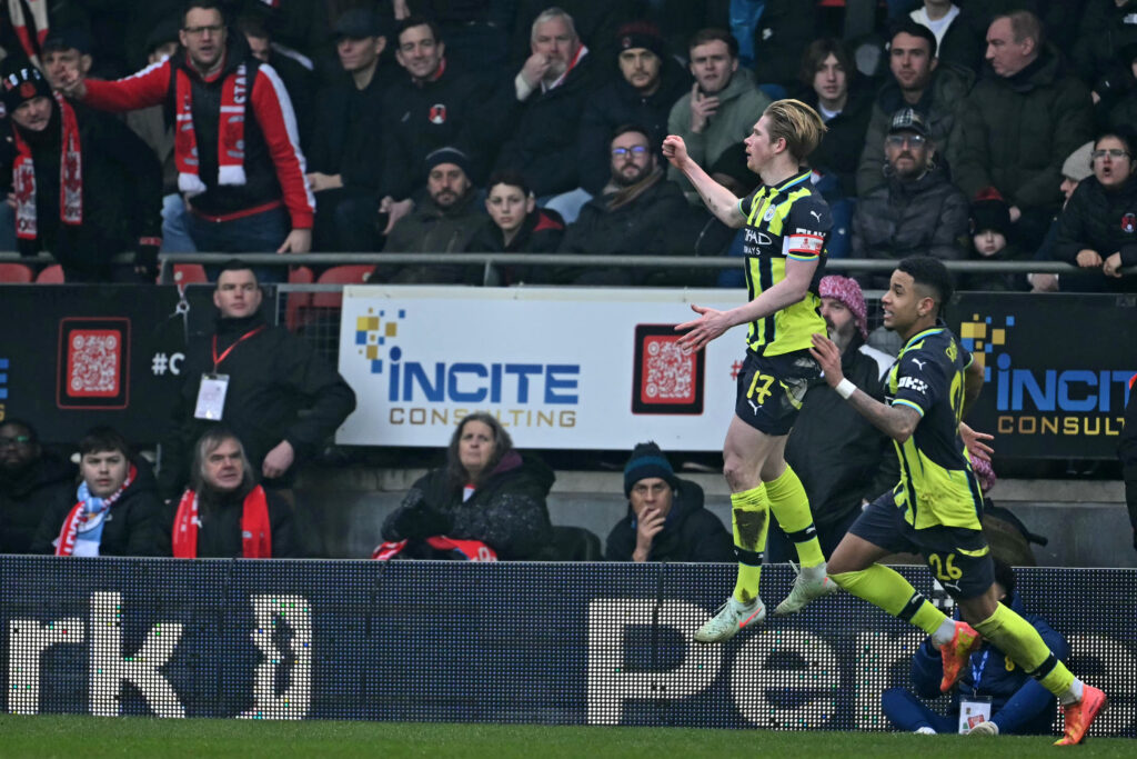 Manchester City, longtemps mené, a fini par éliminer sans briller le petit club de troisième division Leyton Orient (2-1), samedi au quatrième tour de la Coupe d’Angleterre de football.Les champions d’Angleterre en titre, qui restaient sur une lourde défaite en championnat dimanche dernier face à Arsenal (5-1), ont bien failli subir une nouvelle défaite humiliante, cette fois en Cup, face à une équipe très accrocheuse.Pep Guardiola avait effectué huit changements par rapport à l’équipe battue par les Gunners: seuls le gardien Stefan Ortega, Savinho et Omar Marmoush étaient sur le terrain au coup d’envoi des deux matches.Après une première occasion mal gérée par Charlie Kelman, qui a perdu son duel avec le gardien de City, Leyton Orient a ouvert la marque grâce à une frappe magistrale de Jamie Donley, prêté par Tottenham, à la 16e minute.Son tir d’une quarantaine de mètres a lobé Ortega, qui s’était légèrement avancé, a heurté la transversale et a rebondi sur le gardien mancunien pour entrer dans la cage. Si bien que le but a été officiellement inscrit par Ortega contre son camp.Juste avant la pause, le tout nouvel attaquant mancunien Omar Marmoush a eu l’occasion d’égaliser en reprenant de volée un centre quasiment à bout portant, mais Josh Keeley s’est interposé et a permis à Leyton de tenir son avantage jusqu’à la mi-temps.Au retour, Guardiola a fait entrer John Stones et Abdukodir Khusanov à la place du capitaine Ruben Dias et de Vitor Reis.Et à la 56e, les efforts -assaisonnés de chance- ont payé: un tir de Rico Lewis involontairement dévié par son coéquipier Khusanov a trompé Keeley (1-1).Et tandis que Leyton Orient fatiguait, Guardiola a lancé dans la bataille Kevin de Bruyne et Phil Foden à vingt minutes de la fin du temps réglementaire.Bonne pioche puisque le Belge a marqué dès la 79e minute (2-1) et mis City sur les rails de la qualification.