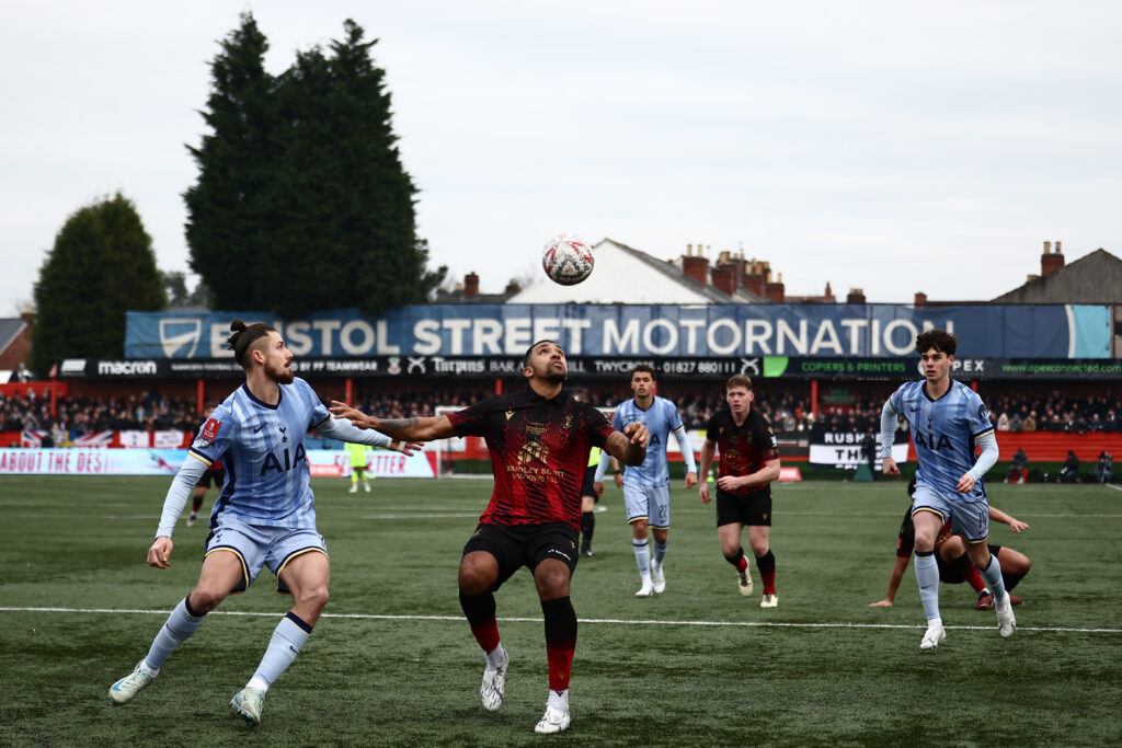 Tottenham a eu besoin d’une prolongation pour venir à bout du petit Poucet de la Coupe d’Angleterre, Tamworth (3-0 a.p.), club de cinquième division passé tout près d’un exploit véritable dimanche à domicile.L’actuel seizième de National League (D5), soit le premier niveau non professionnel en Angleterre, a tenu tête à des “Spurs” peu inspirés. Il s’est même procuré deux balles de qualification dans le temps additionnel (90e+6), repoussées par un défenseur puis le gardien.Les “Lambs” ont finalement craqué en prolongation sur un but contre son camp malheureux de Nathan Tshikuna, sous la pression de Dominic Solanke (101e), un but de Heung-Min Son servi par Dejan Kulusevski (107e), et un dernier signé Brennan Johnson (118e).L’entraîneur Ange Postecoglou a eu besoin de ses entrants pour faire la différence contre une équipe figurant une centaine de places derrière Tottenham dans la pyramide du football anglais.Tombeuse de Liverpool (1-0), mercredi en demi-finale aller de Coupe de la Ligue, son équipe n’a jamais été aussi “spursy”, le qualificatif tout personnel qui qualifie son irrégularité chronique. Dans l’ère de la Premier League, lancée en 1992, seulement deux clubs de l’élite sont tombés en “Cup” face à des équipes de la “non league”, l’équivalent du football amateur en Angleterre: Norwich contre Luton, en janvier 2013, et Burnley contre Lincoln City, en février 2017.Tamworth a failli entrer dans ce club très select devant ses spectateurs massés dans le pittoresque Lamb stadium.Le coup d’envoi a été retardé de plus de cinq minutes, le temps pour Beck-Ray Enoru, perché sur les épaules d’un coéquipier, de réparer le filet de but. Et vingt-quatre secondes après le coup de sifflet, l’attaquant a contraint le gardien de Tottenham a un premier arrêt.Cernés par un public chaud et moqueur, les “Spurs” ont eux attendu la 32e minute avant de cadrer leur premier tir. Mais la tentative de James Maddison a été repoussée d’une main ferme par le gardien Jas Singh.Ce dernier s’est aussi distingué dans un face à face contre Timo Werner (64e), ce qui a permis aux “Lambs” de rester dans le coup jusqu’au bout.