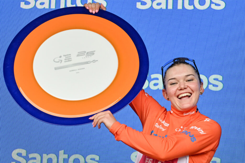 La Suissesse Noemi Ruegg a remporté dimanche le Tour Down Under en Australie, épreuve d’ouverture de la saison cycliste féminine, au terme de l’ultime étape enlevée au sprint par l’Américaine Chloe Dygert, championne olympique de poursuite par équipes à Paris.Ruegg (EF Education-Oatly) est restée parmi les coureuses de tête de l’étape de dimanche et a franchi la ligne en troisième position.Agée de 23 ans, elle avait pris les commandes du Tour samedi en s’imposant dans la deuxième étape avec 15 secondes d’avance sur la Néerlandaise Silke Smulders (Liv Jayco AlUla).Celle-ci termine le Tour Down Under à la deuxième place, devant la Norvégienne Mie Bjorndal Ottestad (Uno-X Mobility), troisième.”J’ai été super nerveuse toute la journée, je voulais vraiment ramener le trophée, a commenté la vainqueur. Mon équipe a été parfaite, j’ai pu conserver de l’énergie en début d’étape et me concentrer sur les deux derniers tours”.Le 25e Tour Down Under masculin débute mardi à Adelaide pour six étapes.